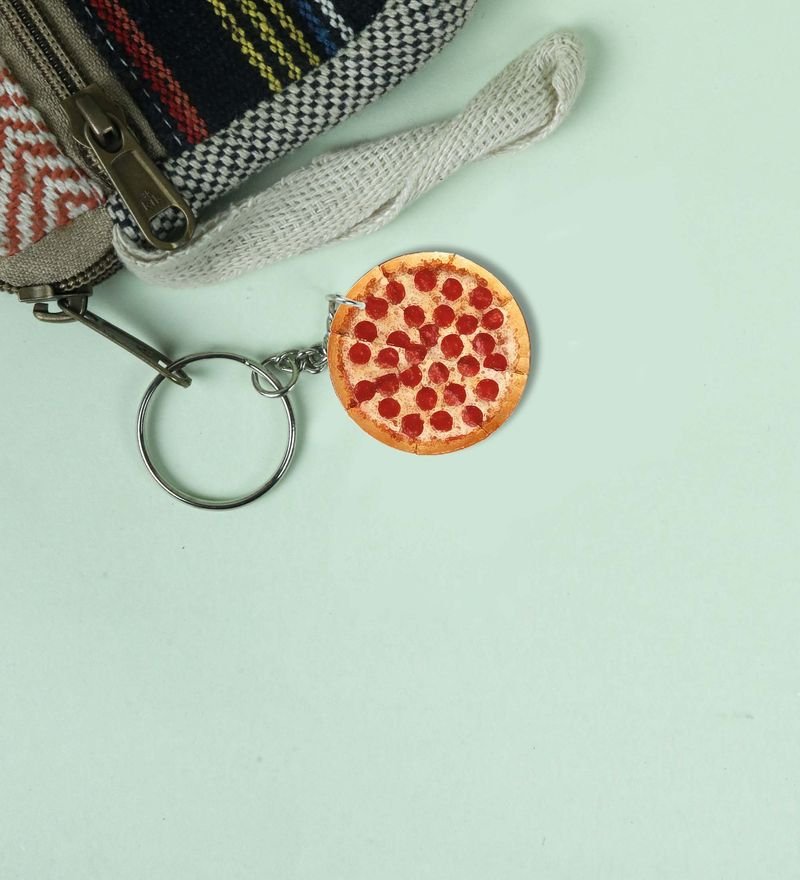 Pepperoni Art Design Printed Round Keychain Pack of 2