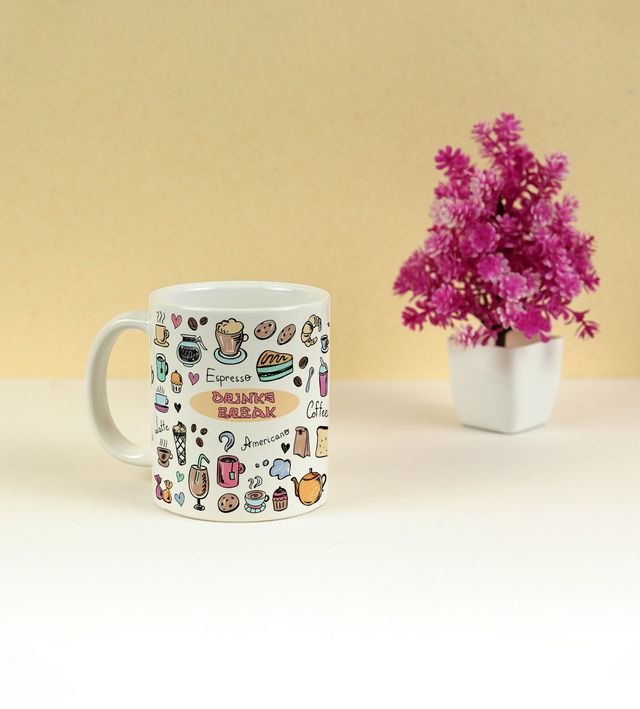 Perfect Coffee and Dessert Break Doodle Printed Coffee Mug 250ml