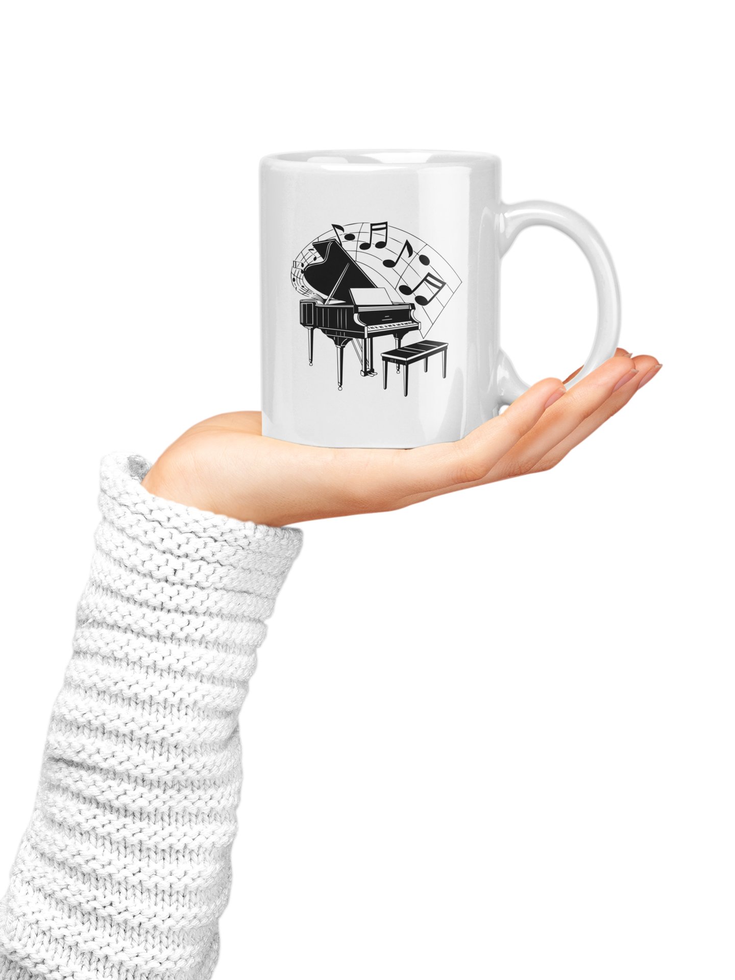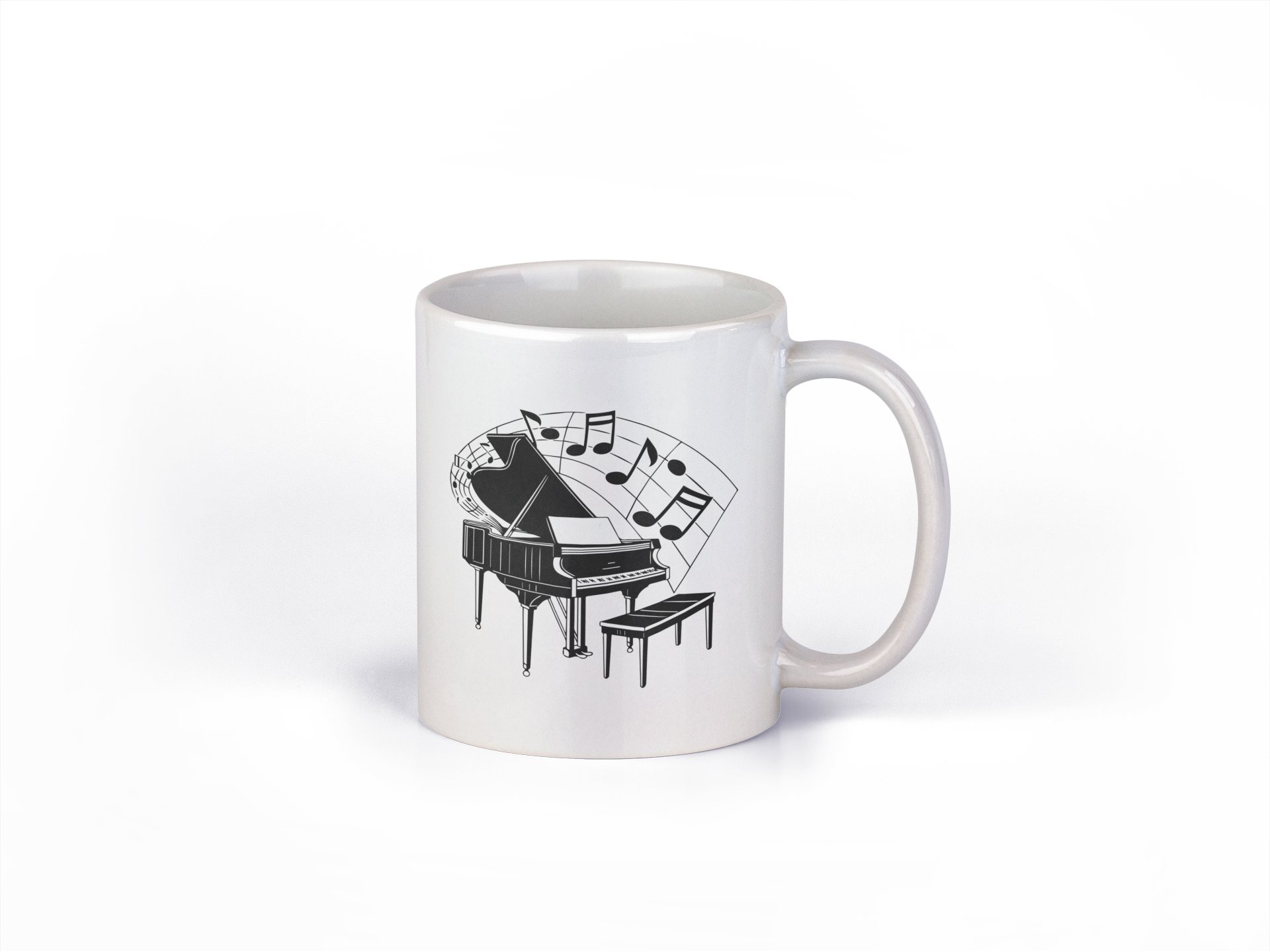Piano with Musical Slanted beamed - music themed printed ceramic white coffee and tea mugs/ cups for music lovers
