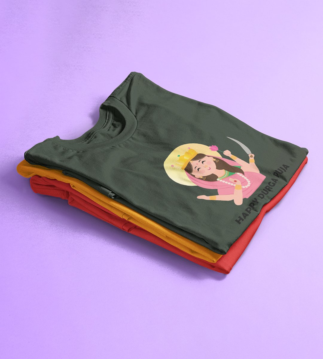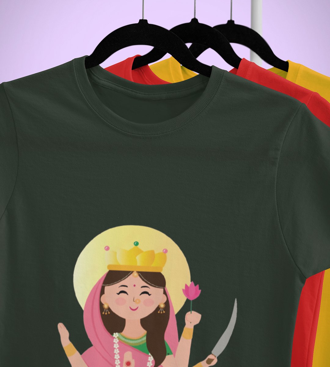 Navratri is a very auspicious festival for hindus. It takes place at the beginning of October and sometimes September. Enjoy the 9 days of festivities with full zeal and make yourself submerged in the love of Maa Durga. Navratri is also known as Durga Puja. And with this Tees, you can shine like a star during this festive season with our navratri themed cotton half sleeved Tshirts. You can pair our t-shirts with trousers and denim of your choice and make it a weekday smart casual or weekend wear. This is durable. This tshirt is smooth and soft which makes you comfortable to wear during all seasons. The printing in it is durable and odourless. It has five sizes, S,M,L,XL,XXL. The Tshirt colour is intact even after repeated washes. It can be kept in your wardrobe and hangers. Please avoid washing mashine to clean this Tee, it may affect the print. Hand wash only. We have brought you many navratri related designs printed on our different colour Tshirts to choose from. Grab it now.