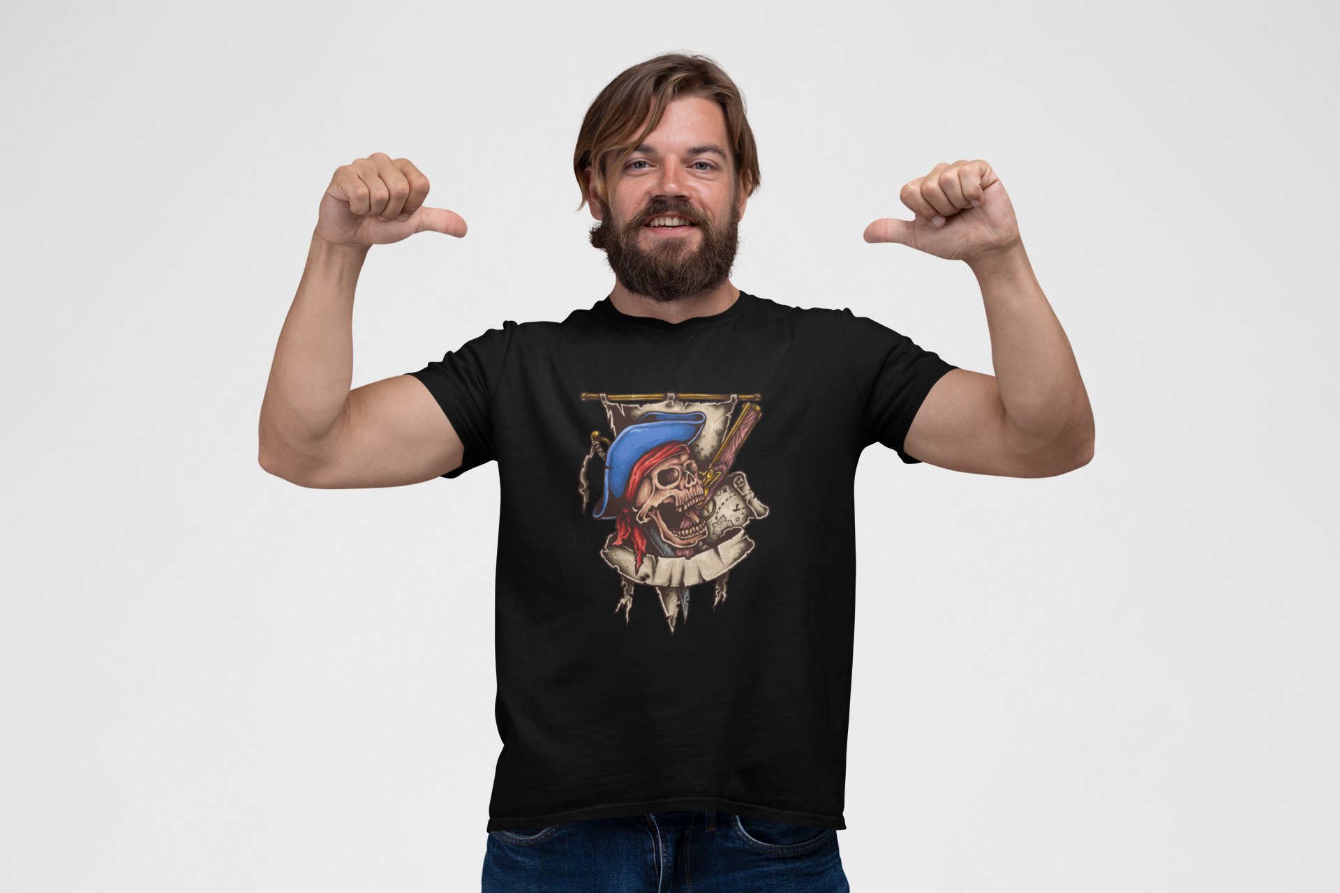 Pirate's skull (blue hat) -round crew neck cotton tshirts for men