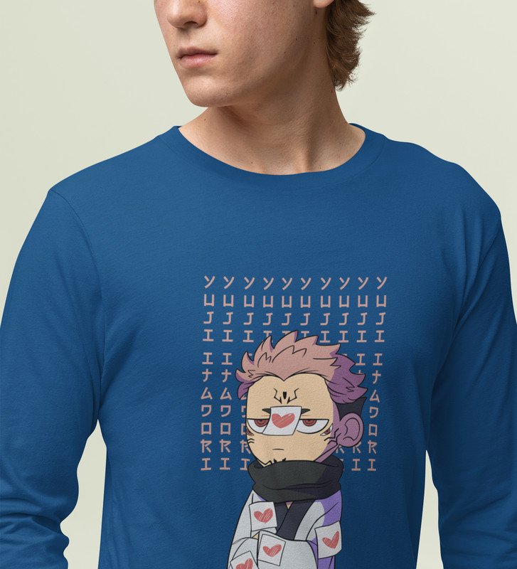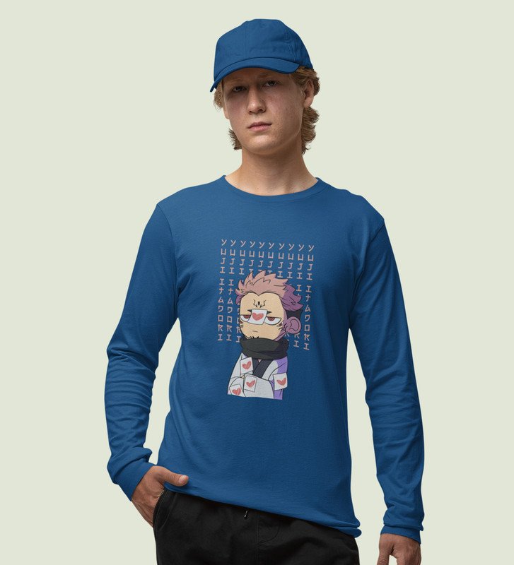 Pissed Itadori Cotton Blue Full Sleeves Tshirt For Mens and Boys
