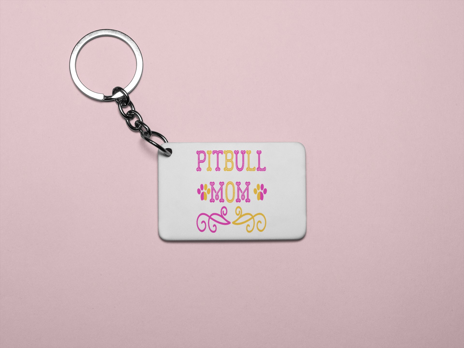 Pitbull Mom Yellow And Pink Text -printed Keychains for pet lovers(Pack of 2)