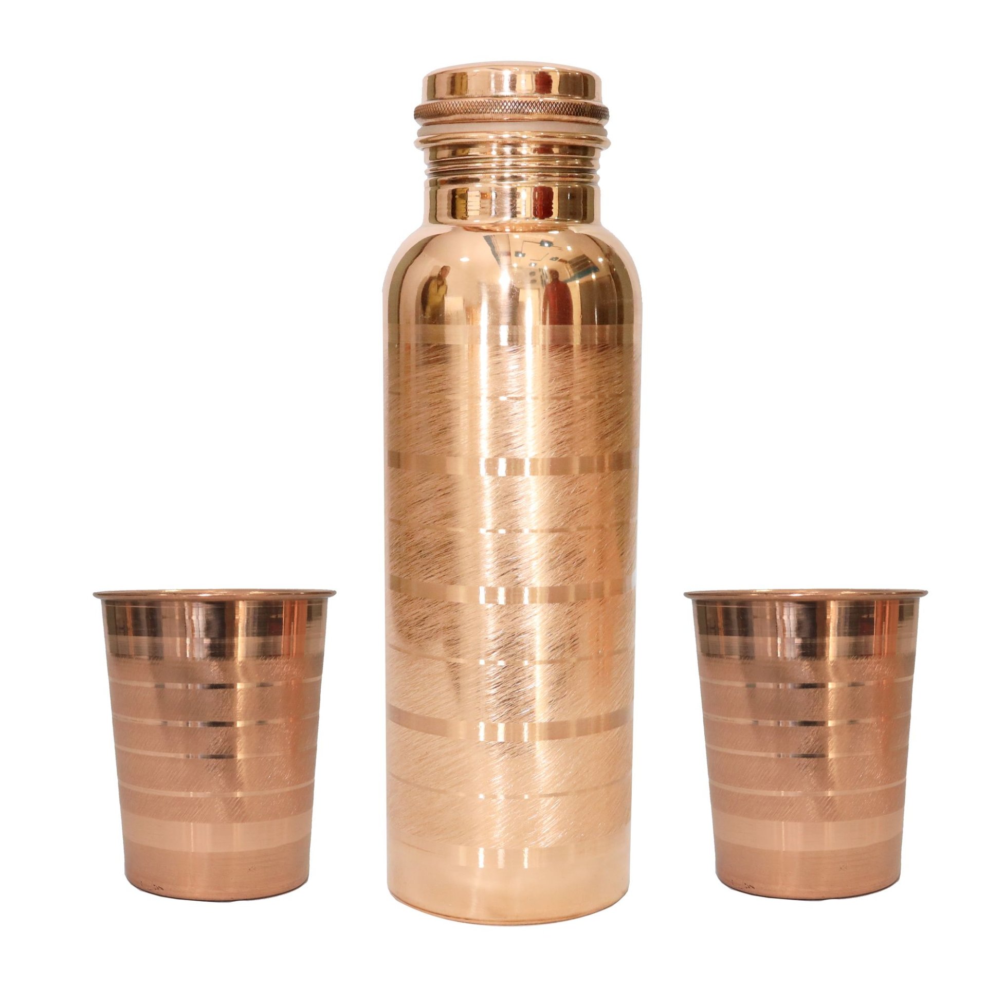 Replace your regular water bottles with our Indian copper bottles, this glass is a simple way that you can begin to use the benefits copper in your home. Enjoy the full benefits of drinking water from a copper cup; However, it also means that frequent polishing and cleaning is required to maintain the glossy surface of the water botlle. Really unique water glasses made of the finest copper metal from india