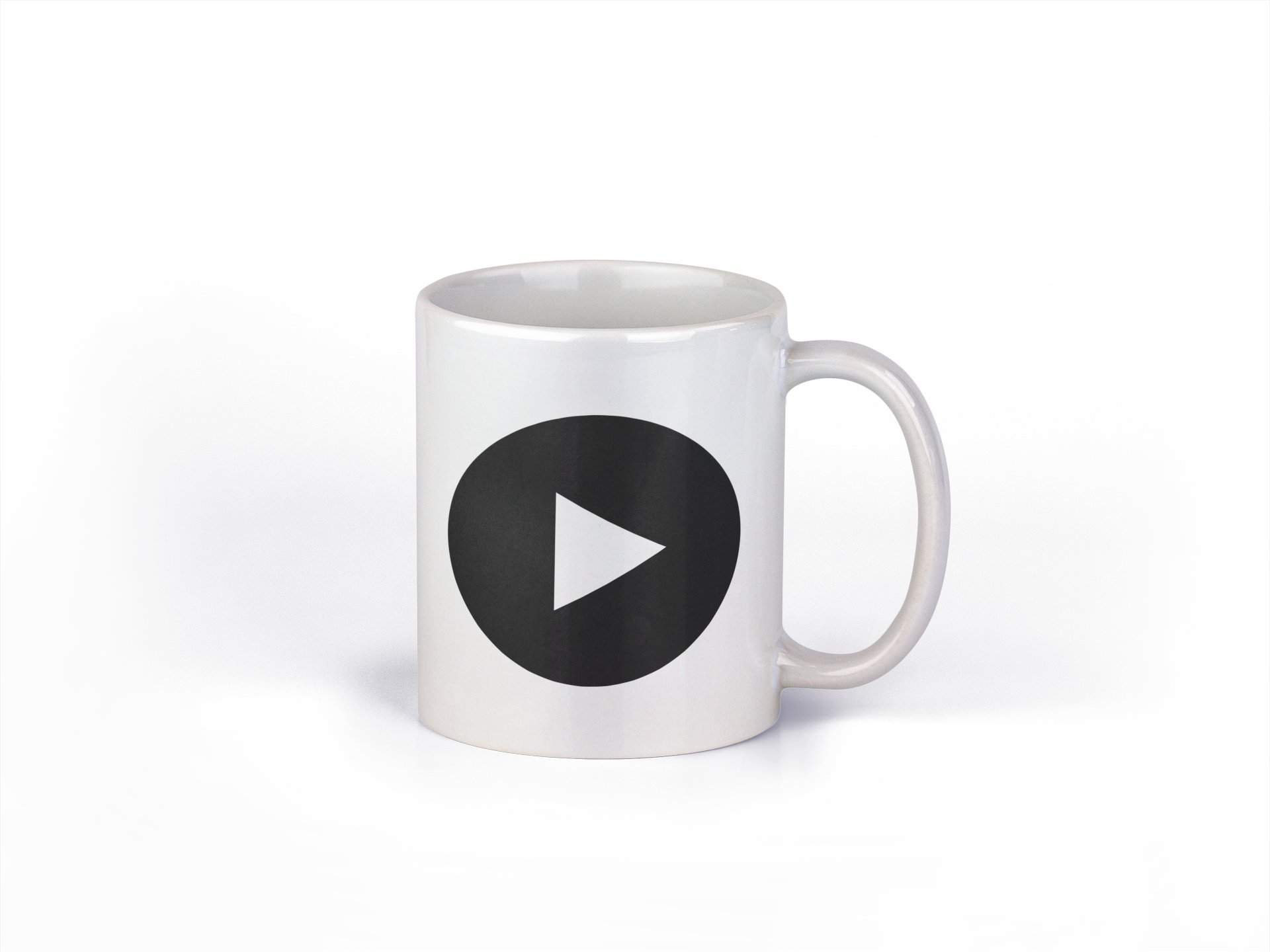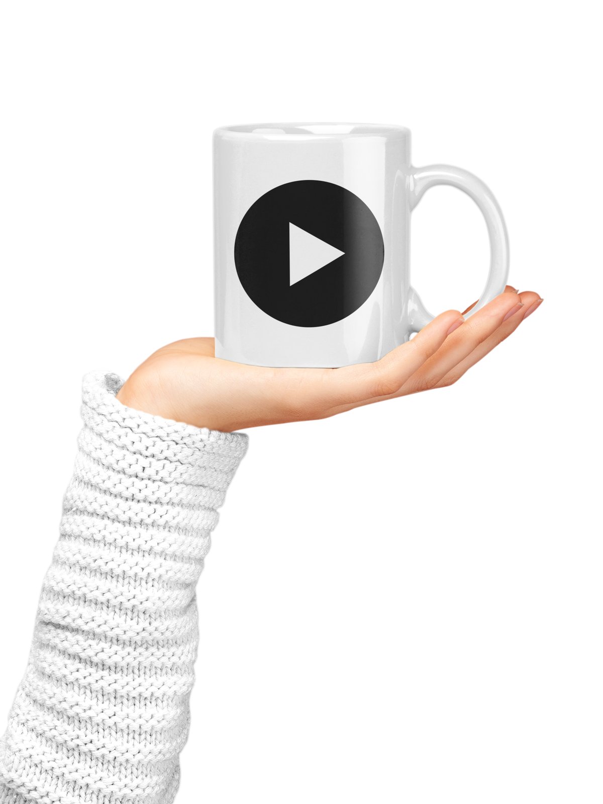 Play button - music themed printed ceramic white coffee and tea mugs/ cups for music lovers