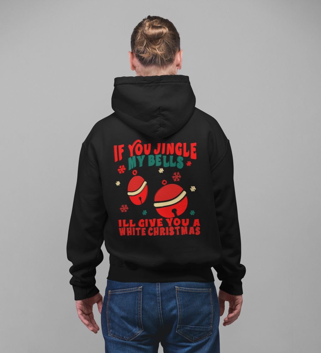Playful Jingle Bells Capturing the Delight of a White Christmas Printed Black Cotton Hoodie