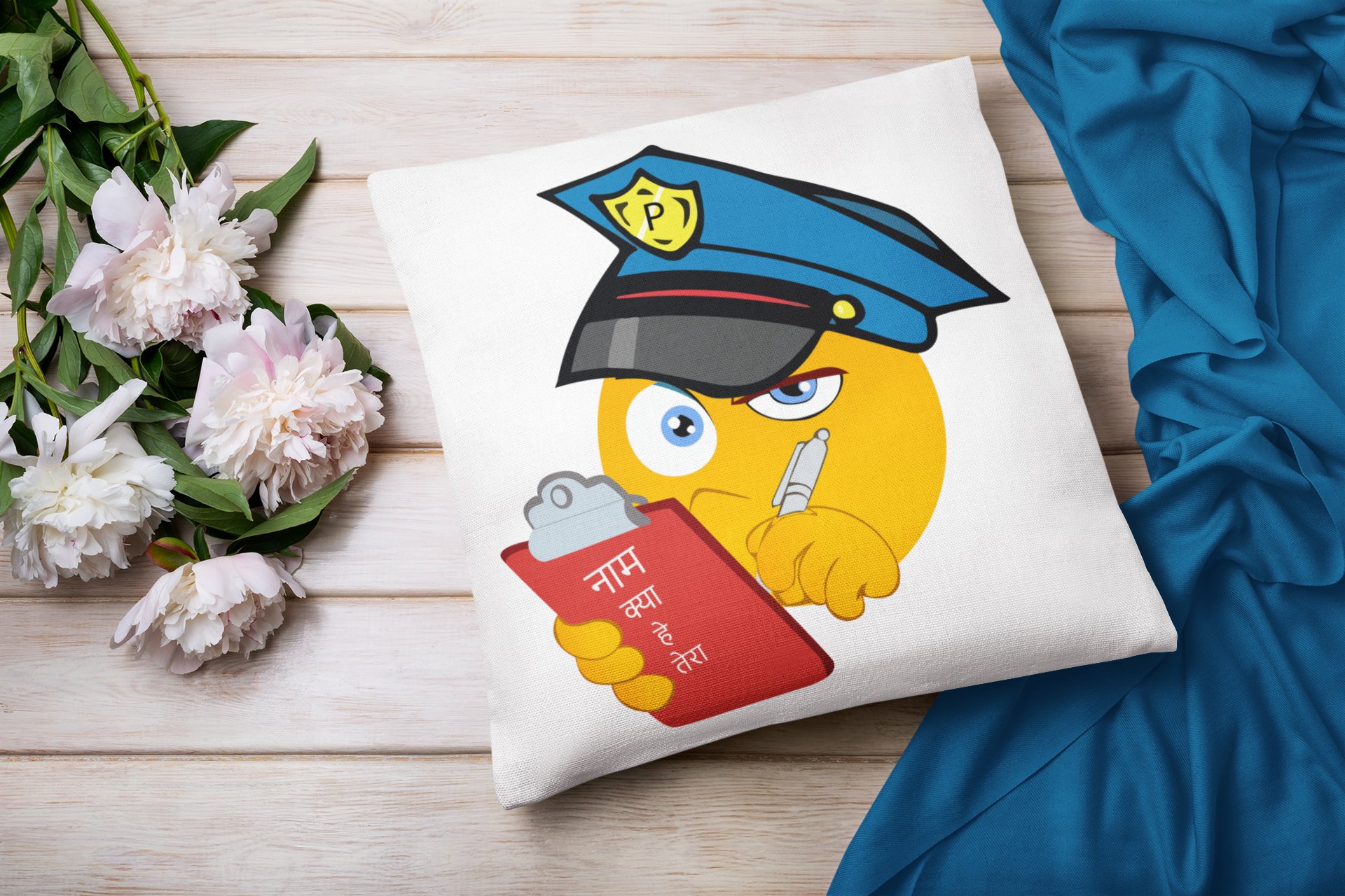 Please be Aware, Police is Here Emoji - Emoji Printed Pillow Covers For Emoji Lovers(Pack Of Two)