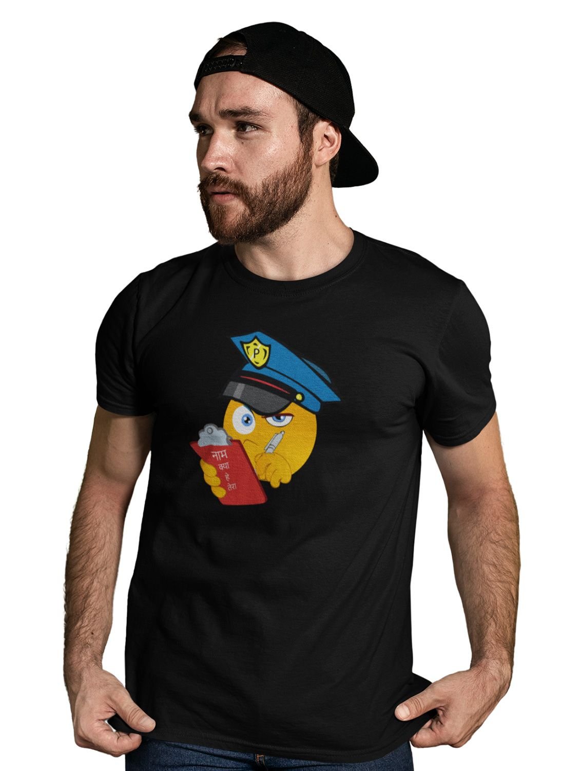 Please be Aware, Police is Here Emoji T-shirt - Clothes for Emoji Lovers - Suitable for Fun Events - Foremost Gifting Material for Your Friends and Close Ones