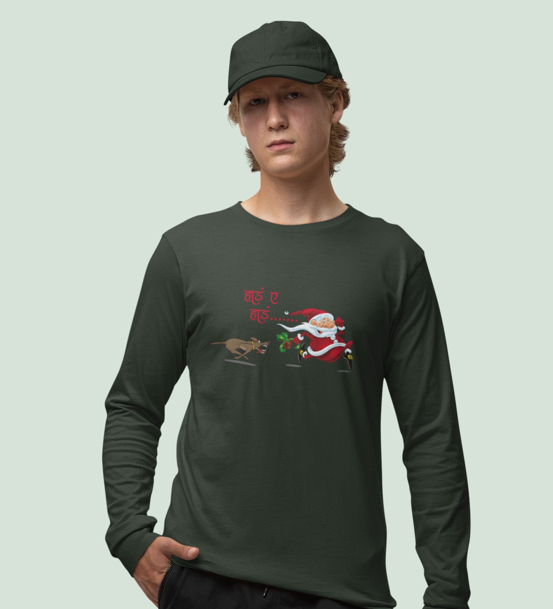 Poor Santa: Cute DesignerFull Sleeve T-shirte Green Best Gift For Boys Girls
