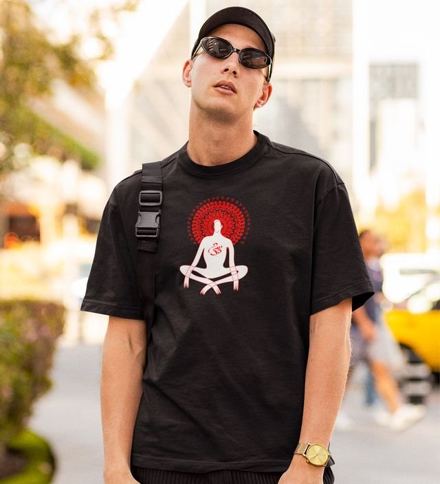 Power Of Om Black Round Neck Cotton Half Sleeved Men T-Shirt with Printed Graphics