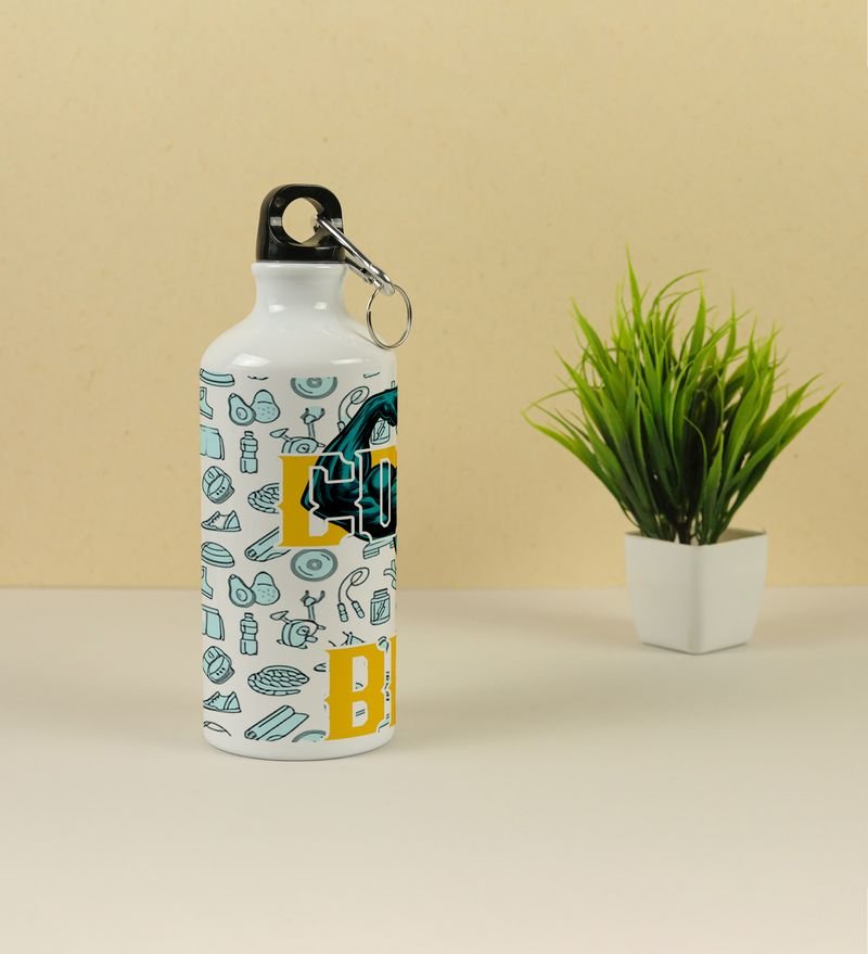 Fuel your fitness journey with our Gymsthetic Theme Printed Aluminium Sipper Bottle (600ml)