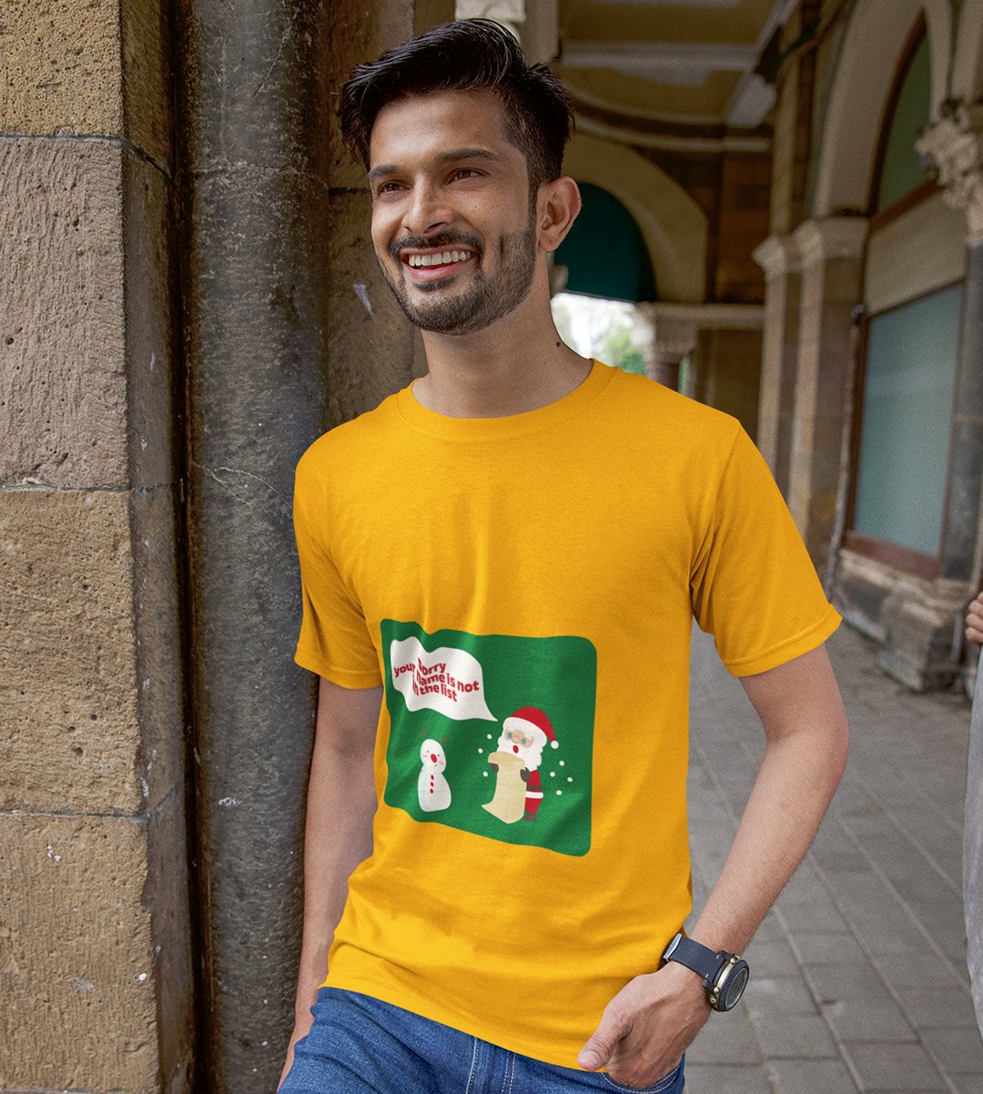 Prankster Santa: Funny Printed T-shirt (Yellow) Perfect Gift For Secret Santa