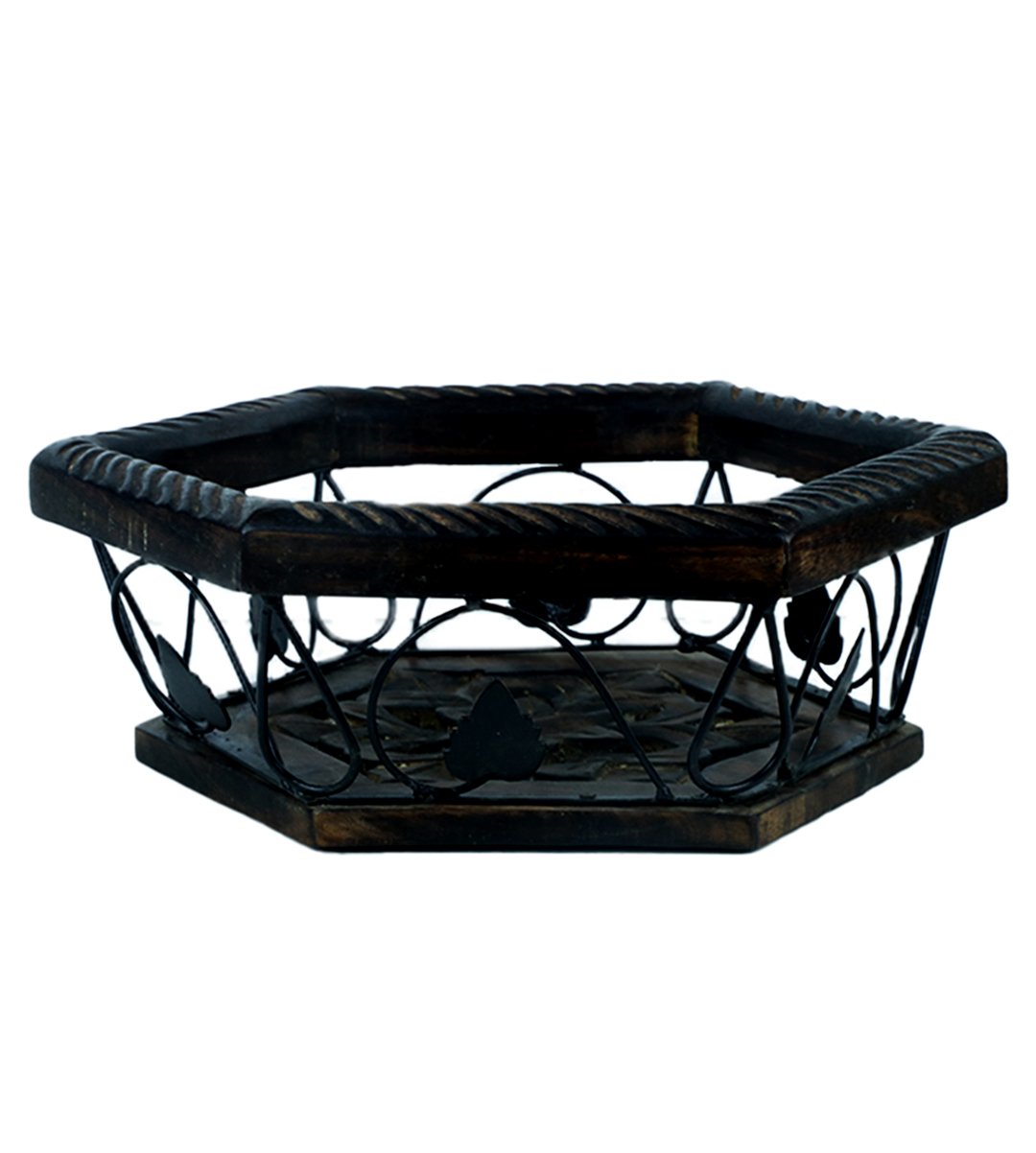 The quadrilateral six-sided wooden and wrought iron fruit and vegetable basket, fruit vessel, or a fruit container is used to keep both fruits and vegetables in it. The product is made up from wrought iron and wood. The designs enhancing the product into a classified one. It has best finishing. It is used to keep in dining table and center table. You must have your favourite one. Easy to carry and its patterns are eye-catchy. We have brought you many fruit and vegetable containers to choose from. You can gift it to your family, relatives, friends, siblings. Also it can be gifted in birthdays, marriages, anniversaries, house warming parties, chirstmas parties etc. Grab it as soon as possible.