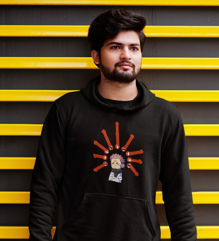 Printed Itadori Anime Cotton Black Hoodies For Mens and Boys
