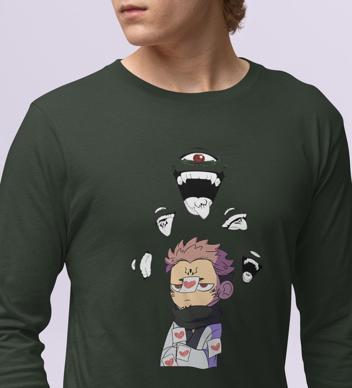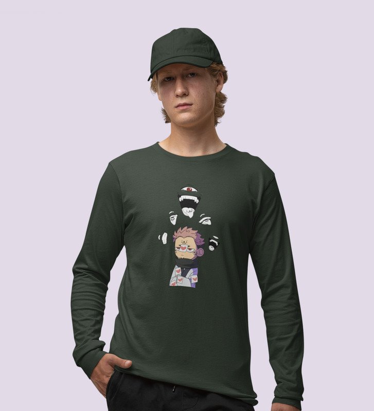 Printed Itadori Anime Cotton Green Full Sleeves Tshirt For Mens and Boys