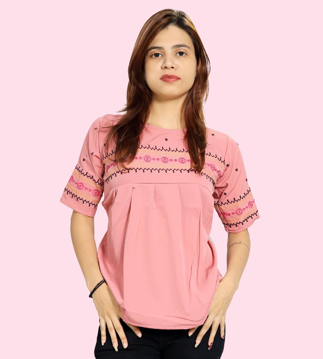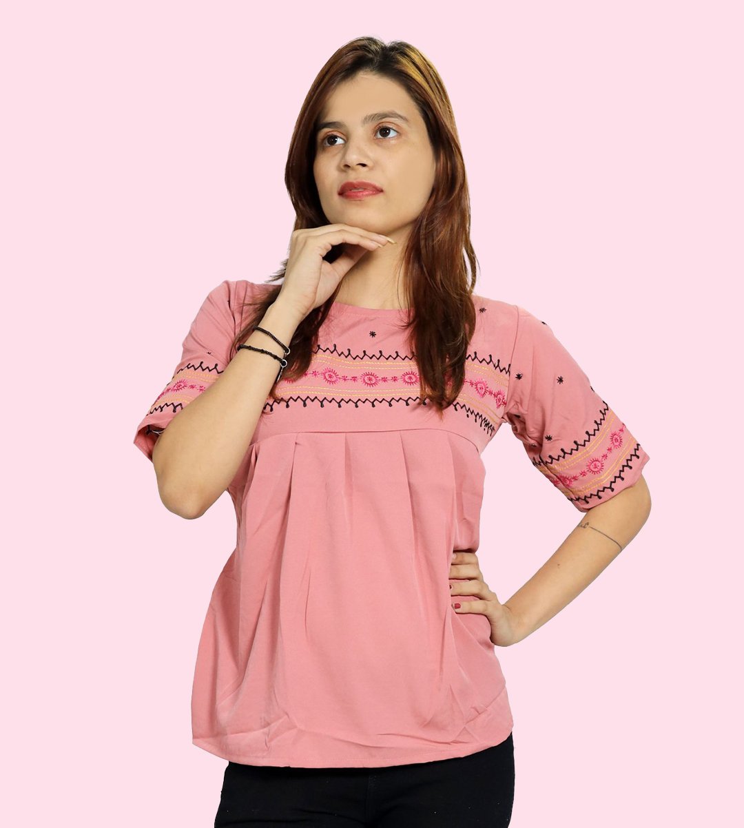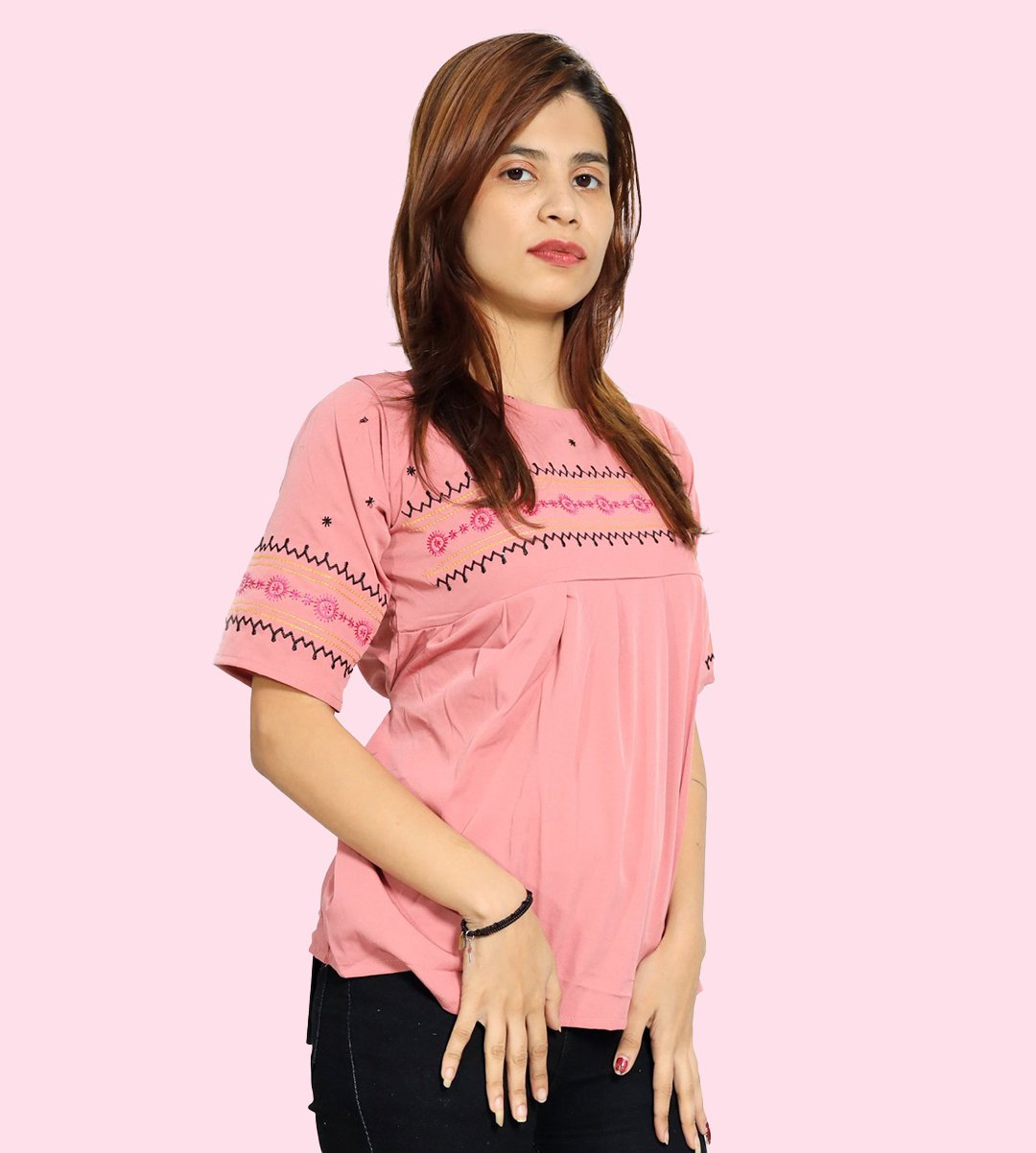 Women loves to wear top of any age groups. The fashion is not only limited upto young girls / teenagers but some married women also love to wear it. The recognization of top is very much popular in 21st century. It is used by the modernized ladies. Easy to wear. It looks good with jeans or jeggings. We have brought you a full collection of floral designs printed top to choose from. This is made up of Rayon and designed for your plesant and cozy.