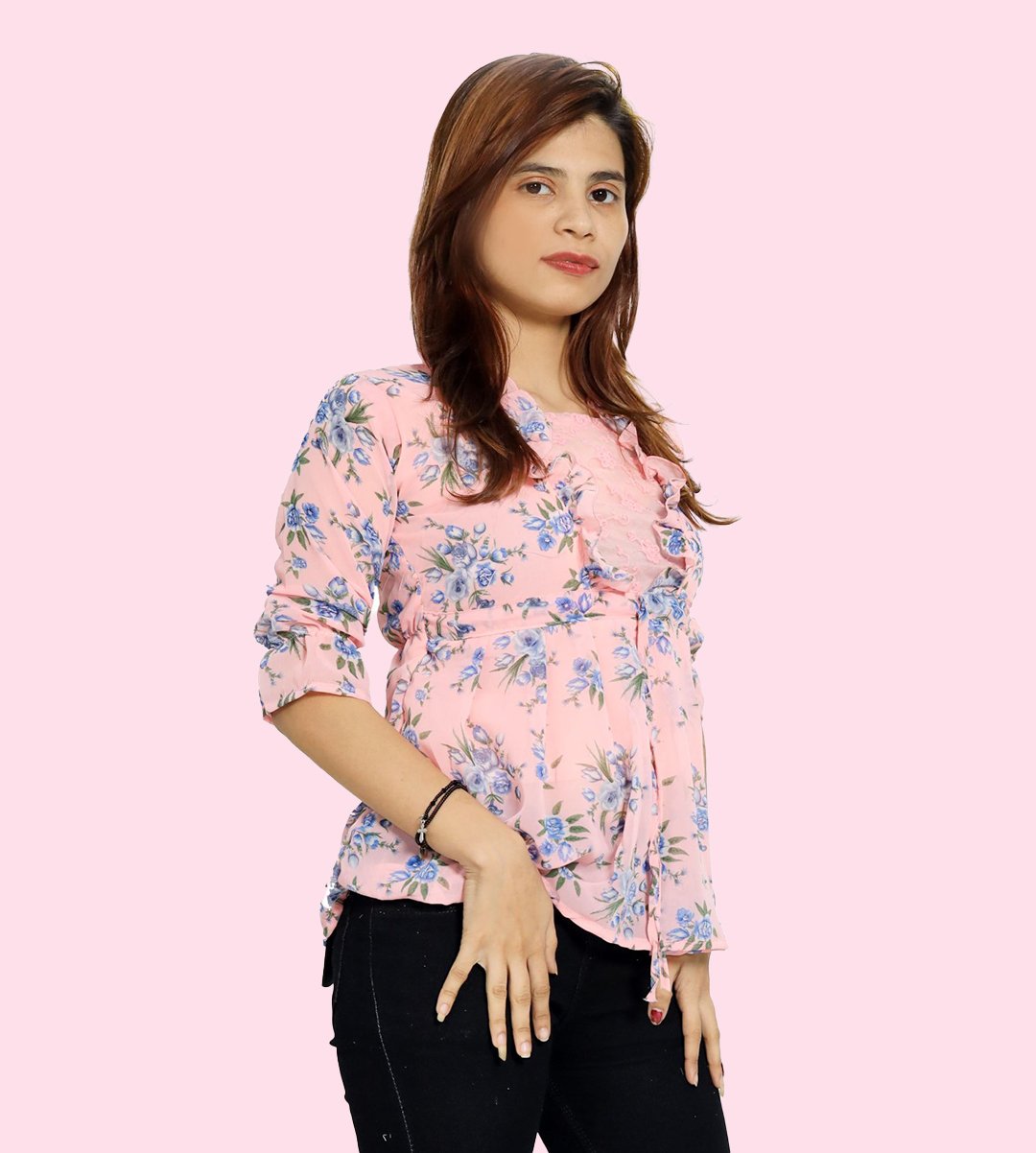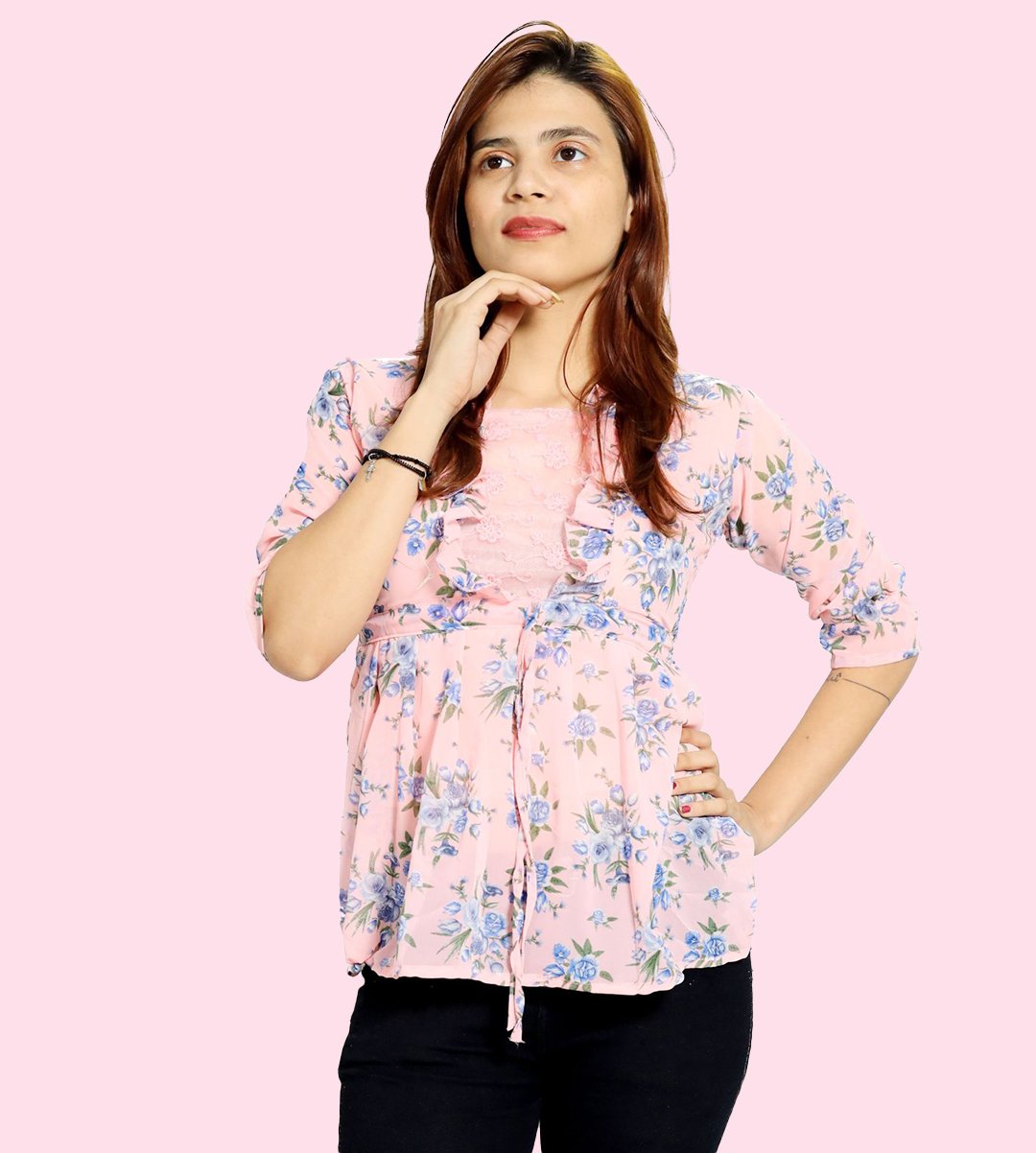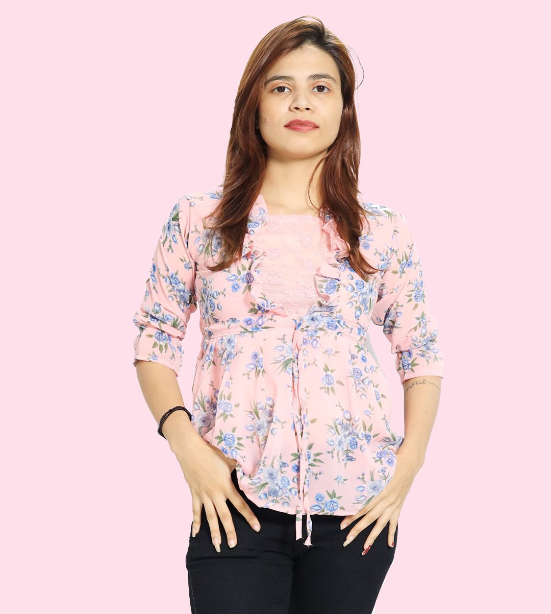 Women loves to wear top of any age groups. The fashion is not only limited upto young girls / teenagers but some married women also love to wear it. The recognization of top is very much popular in 21st century. It is used by the modernized ladies. Easy to wear. It looks good with jeans or jeggings. We have brought you a full collection of floral designs printed top to choose from. This is made up of Rayon and designed for your plesant and cozy.