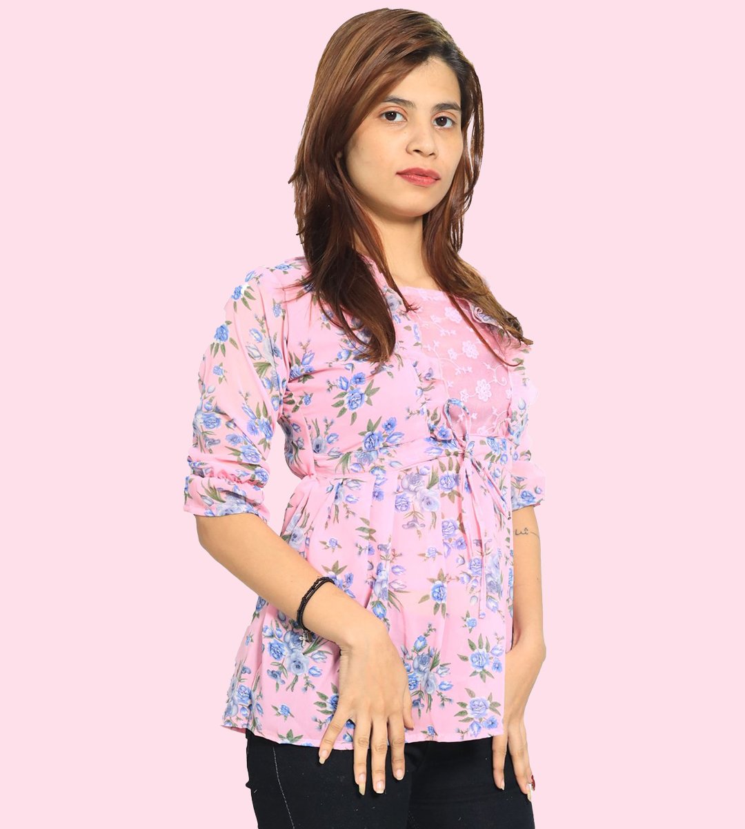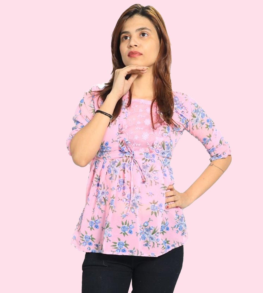 Blue flowers floral printed womens top (pink top) - Made up of Rayon for your plesant and cozy