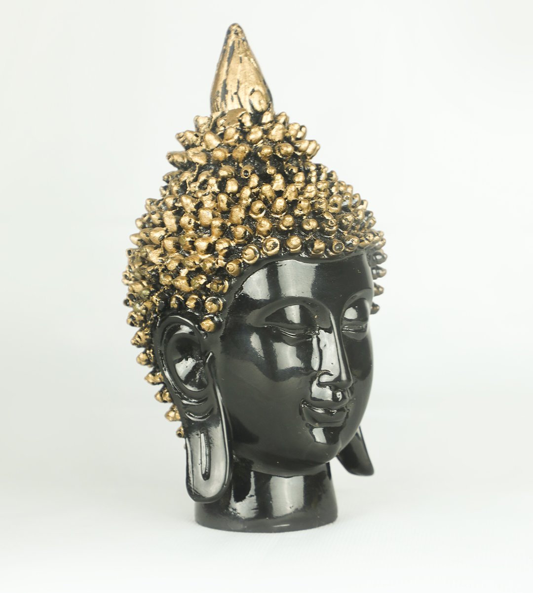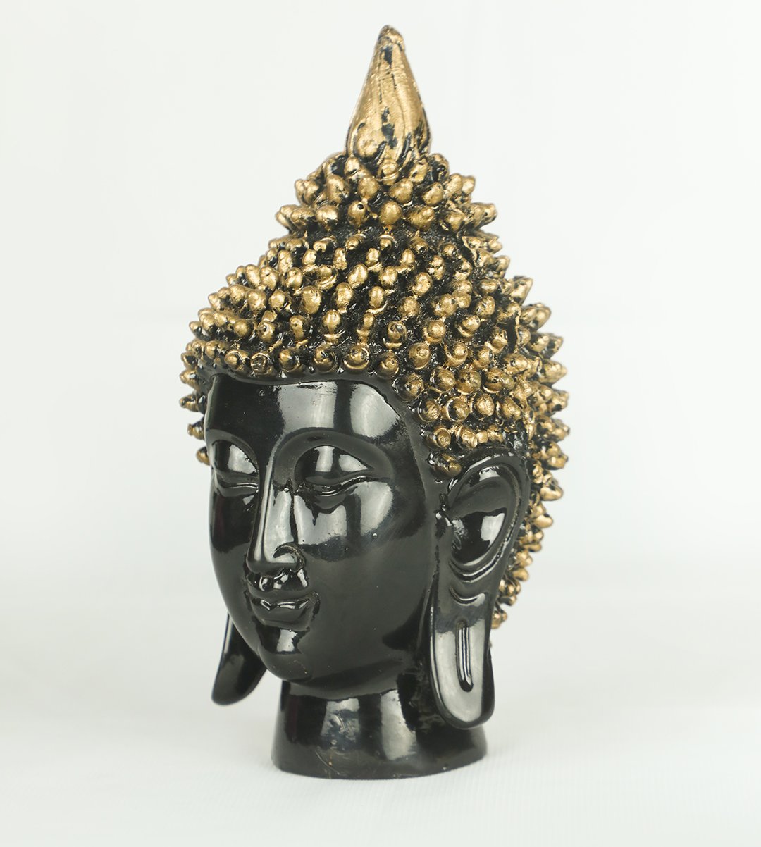 Buddha head polyster resin black shining showpiece with golden top for home and office decor