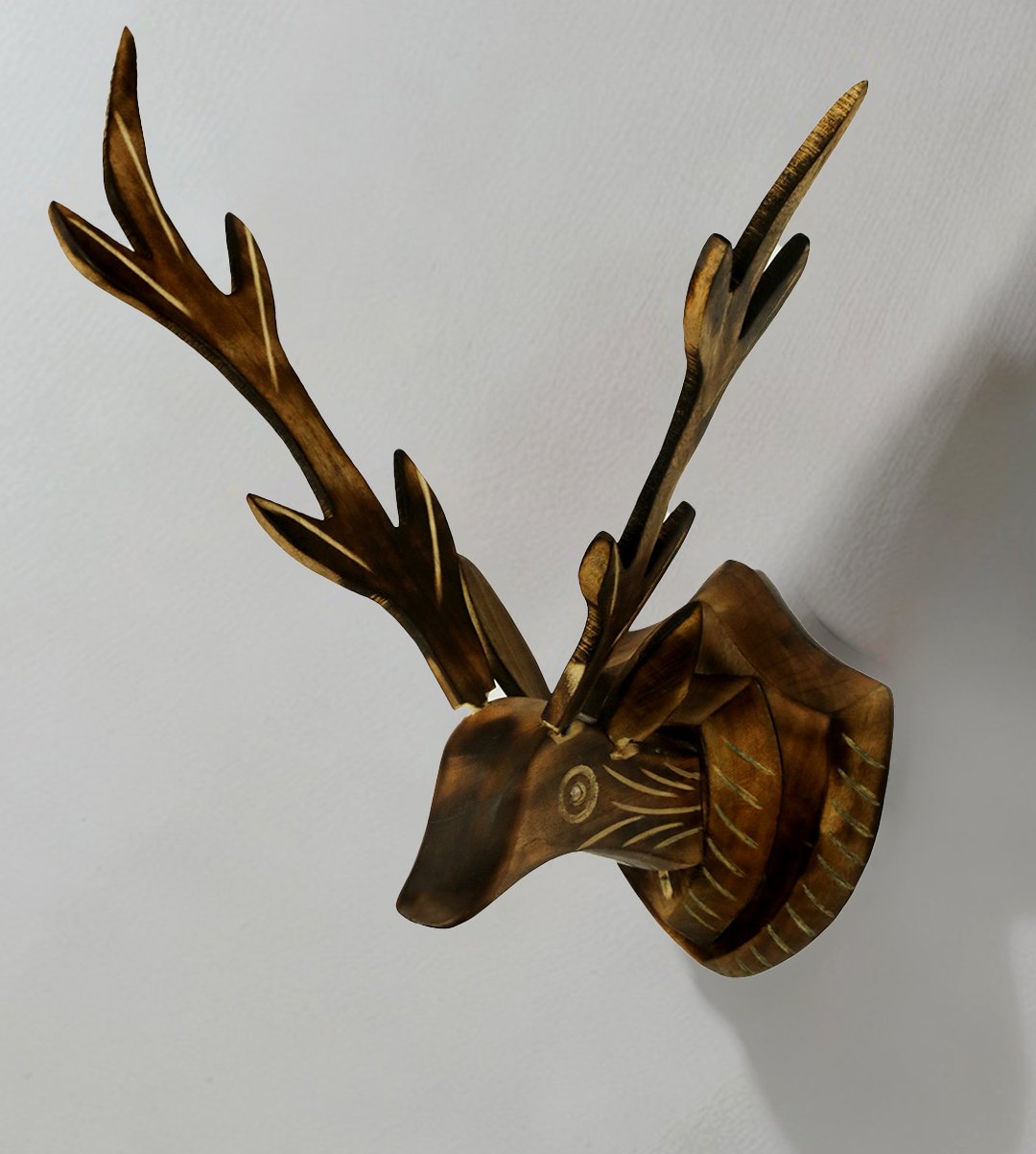 Bankura deer head is a decorative piece which looks charming. It is a finest wooden decorative deer head for walls. It is made up of natural wood and the artistic value gives extra positive vibes. It is used to decorate our home walls, restaurent walls, bar walls etc. The enchanting product brings alluring look to the walls. Most people love to give different look to their home walls like paintings, photo frames but this bankura deer head gives beauteous look more than what you think. It is made up of natural wood with best finishing and artistry. We have brought you many bankura deer heads to choose from. Avoid using wet cloth to wipe this item for better use. It can also be an ideal addition to your drawing room, guest room, living room etc. It could be a memorable gift to your friends, family or dear ones. What can be a better gift to someone than a wooden deer head set for your friends? Grab it now.