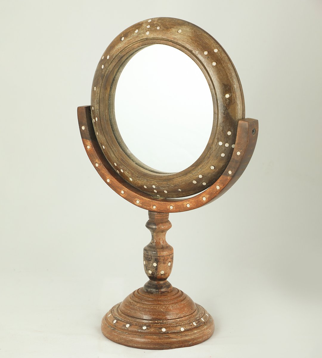 Wooden mirror stand is used to see ourself. Worthy vintage mirror stand made for women and man can also use is also used to decorate home. Made of pure wood. The original beauty enhances the vibes into a superior one. Everyone has their favourite one to choose from. We have brought you this mirror item. Its shape looks ancient glory. Gifting material to mothers, relatives, female friends and dear ones. Grab it now.