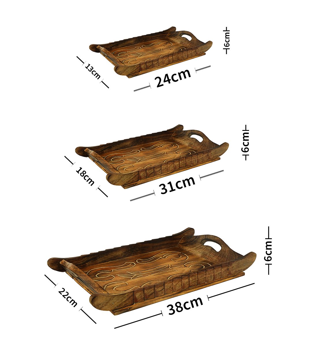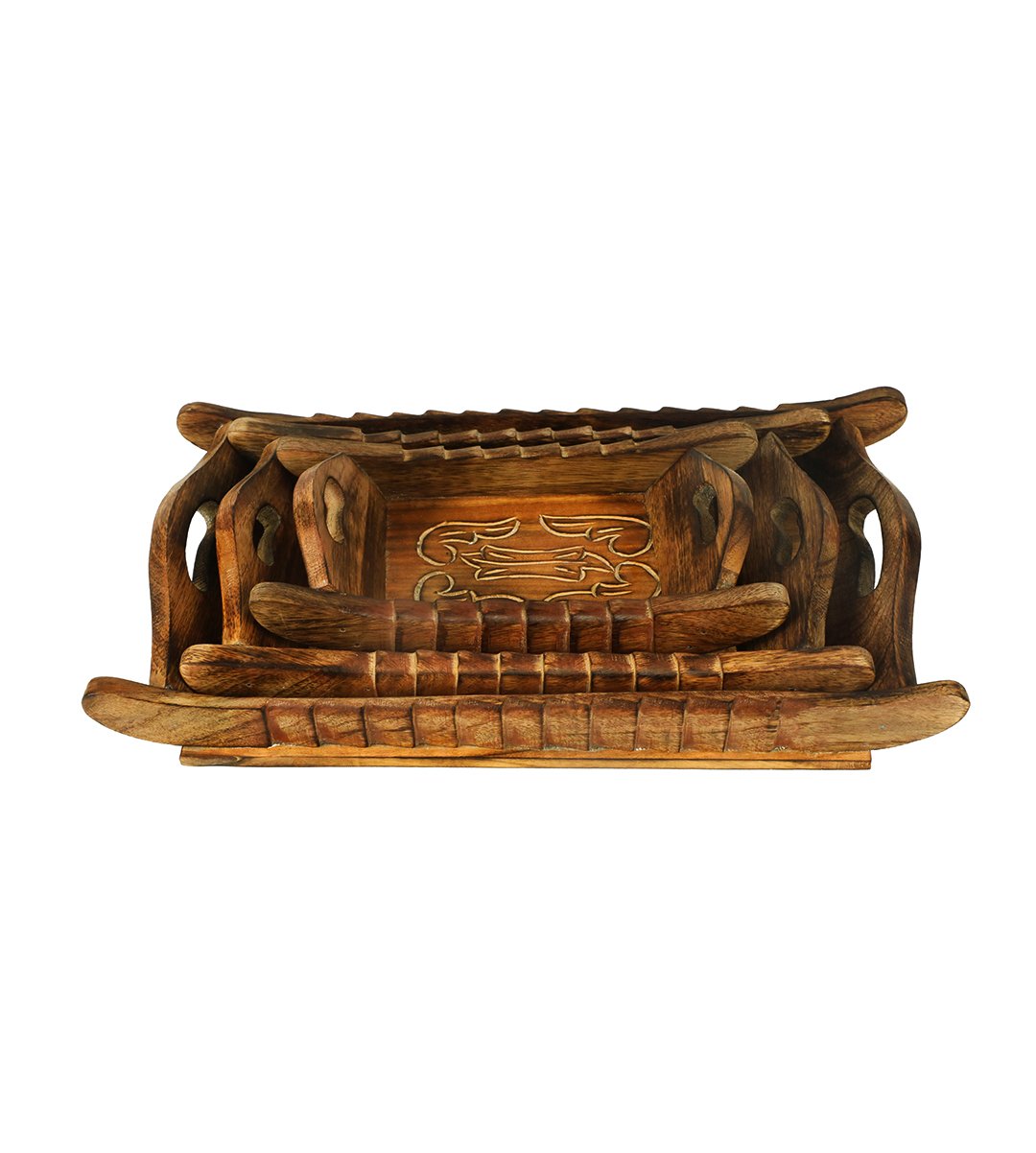 Wooden zig-zag tray (set of 3) are used in dining tables. It looks classy because of its unique, splendid and beautiful. It is used in kitchen. It is useable tray to use in kitchens, dining tables, restaurents. This tooI can be transfer to one person to another while having their meal. Everyone has their favourite one to choose from. It looks good in transparent cupboards or also you can keep it in dining table. We have brought you many wooden and stylish wooden trays of different designs. Grab it now. Add an element of beauty to your dining table. It could be a memorable gift for birthdays, marriage parties, house warming, grah prawesh, shop inaugration, anniversary parties etc, it can be a memorable return gift. Gift it to yourself, spouse, mother, relative or your loved ones. All Occasion Gift.