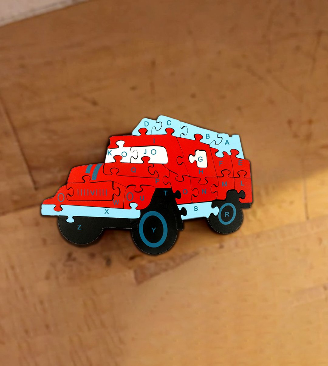 Wooden red jeep puzzle toy game/ riddle game is used by childrens to play. Made up of natural wood. The colourful slices attracts kids. Not only kids, adults can also play with it for fun. Toddlers can fresh their mind through this product by playing with it. It helps to develop children's intellectual power. Everyone has their favourite one to choose from. We have brought you many wooden playing items of different designs. Avoid using water for longer use. You can gift it to childrens. Grab it now.
