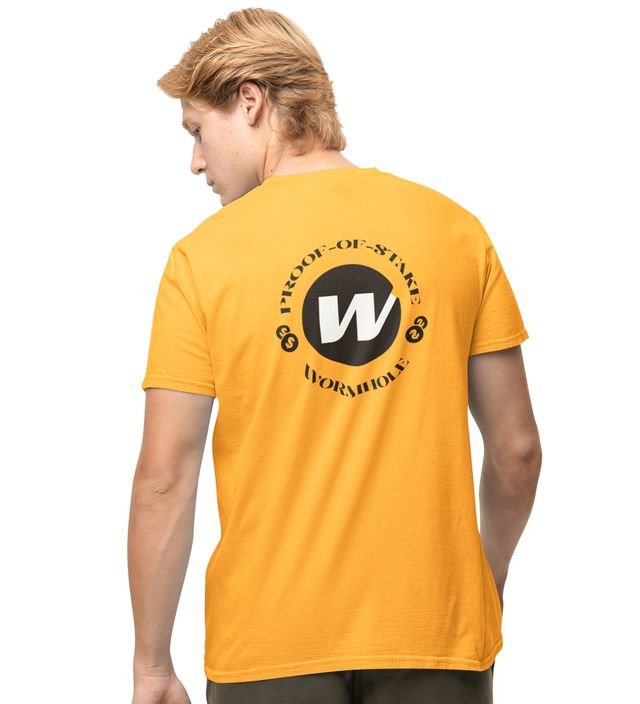 Proof Of StakeWings Yellow Round Neck Cotton Half Sleeved Men's T-Shirt with Printed Graphics