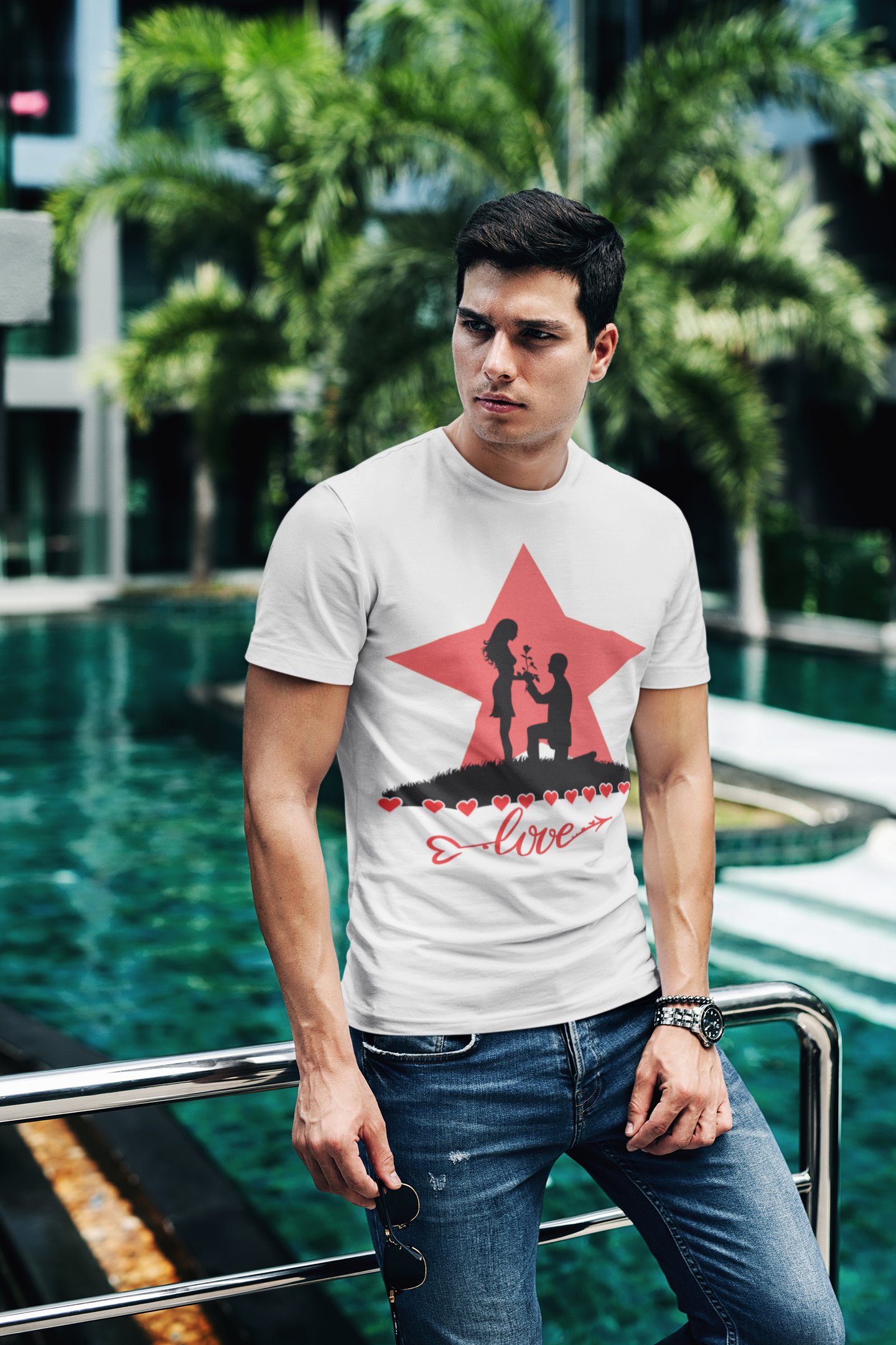 Proposing Illustration Love-Printed White T-Shirts-Couple Love