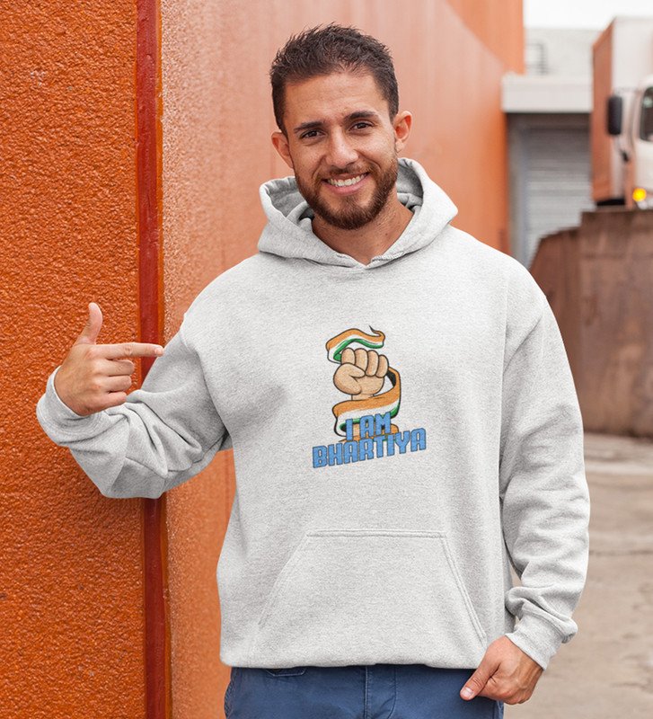 Proud Indian White Printed Hoodies For Mens Boys Round Neck Hoodies