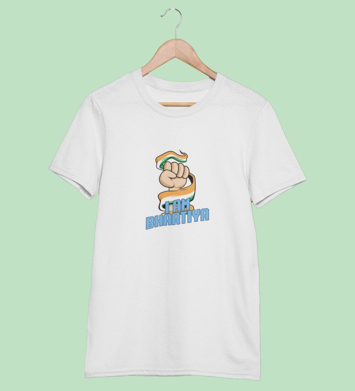 Proud Indian White Printed T-shirts For Mens Boys Round Neck T-shirt