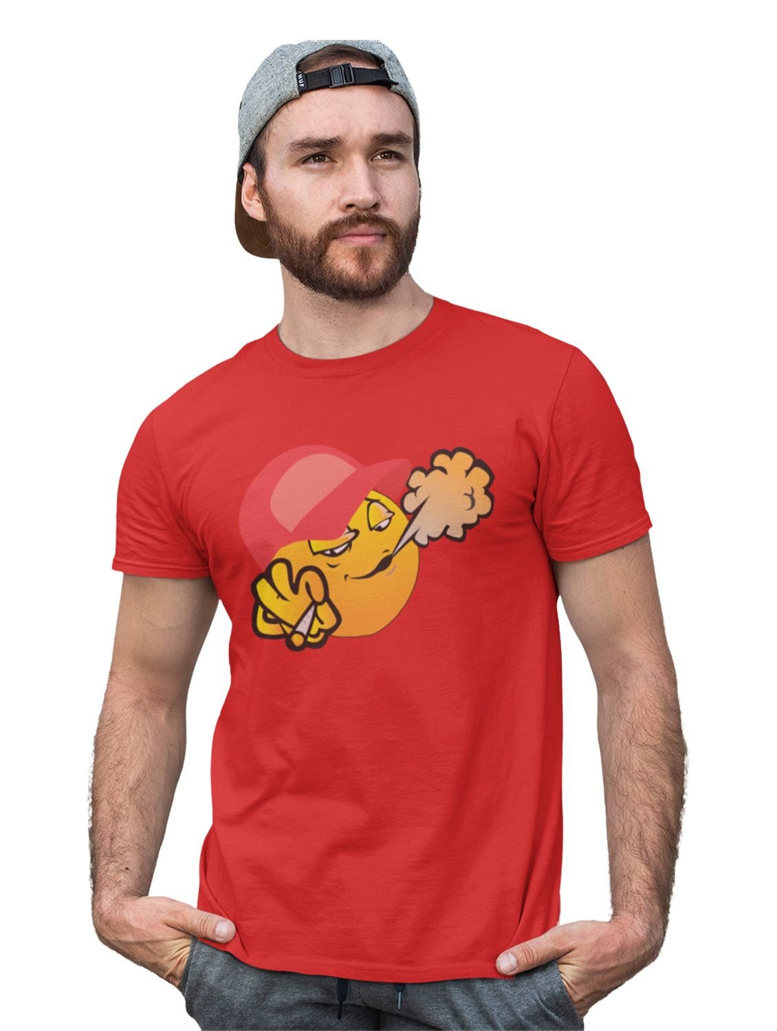 Puffing Weed Emoji Printed T-shirt (Red) - Clothes for Emoji Lovers - Foremost Gifting Material for Your Friends and Close Ones