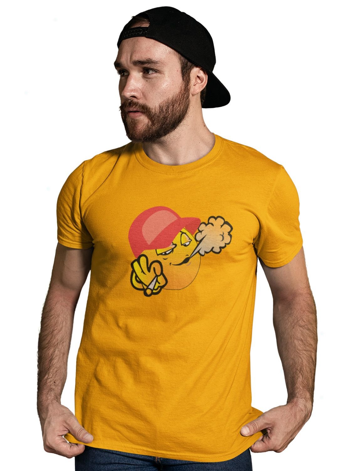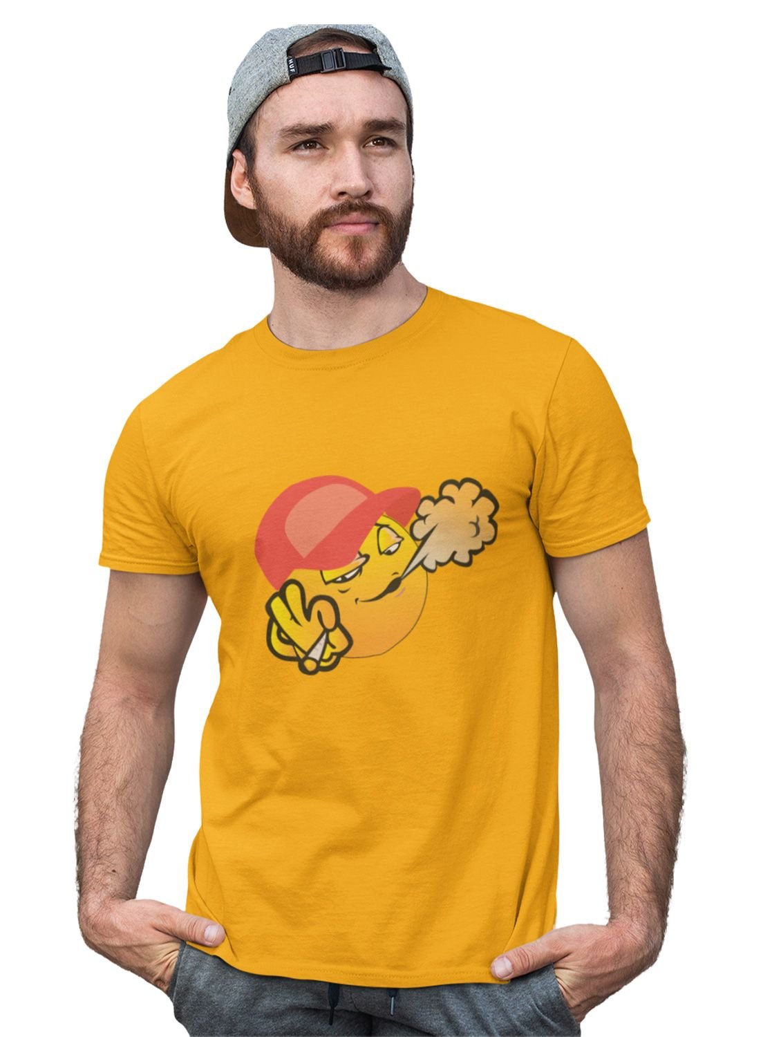 Puffing Weed Emoji Printed T-shirt (Yellow) - Clothes for Emoji Lovers - Suitable for Fun Events - Foremost Gifting Material for Your Friends and Close Ones