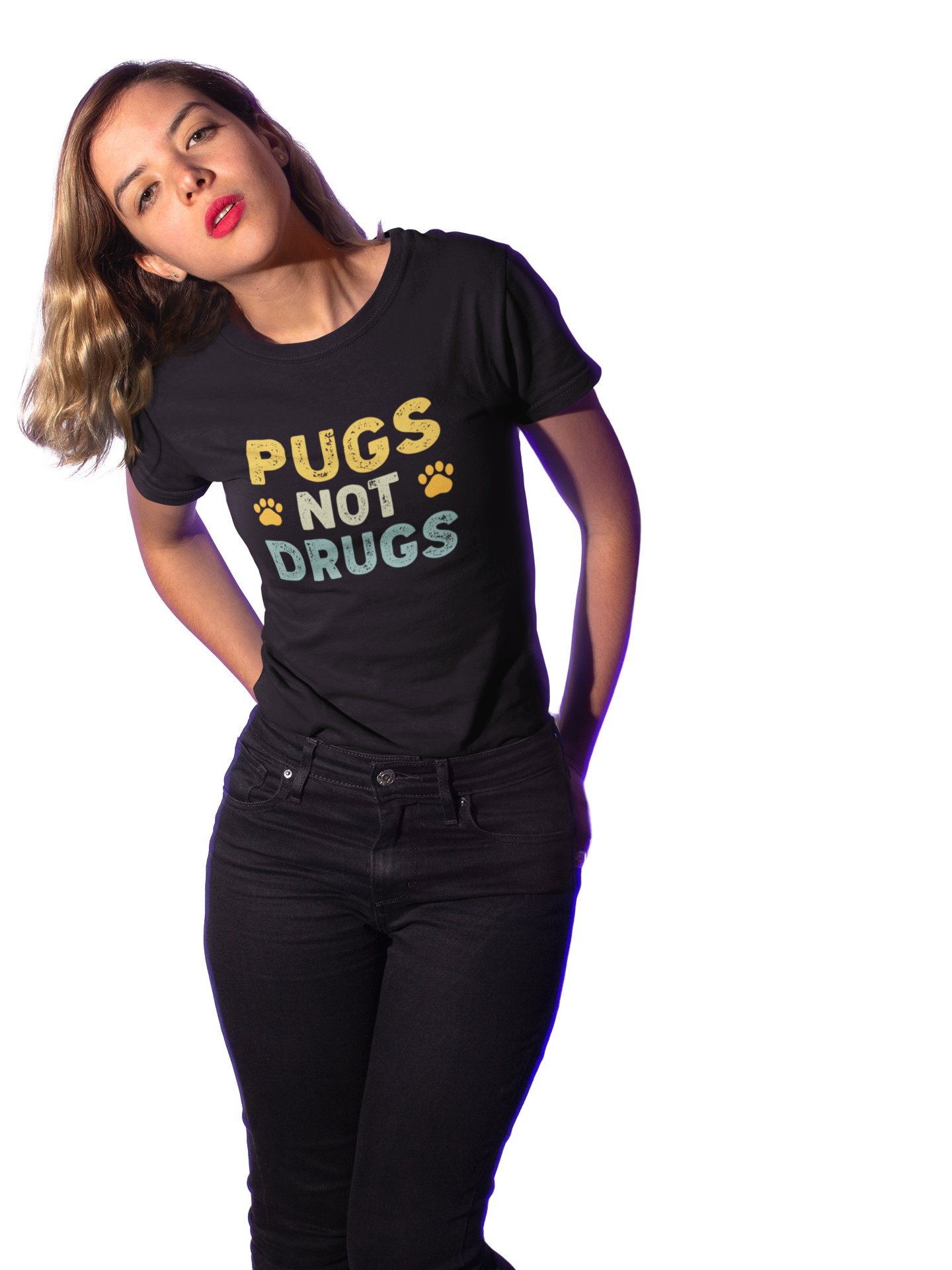 Pugs not drugs -Black - printed cotton t-shirt - comfortable, stylish