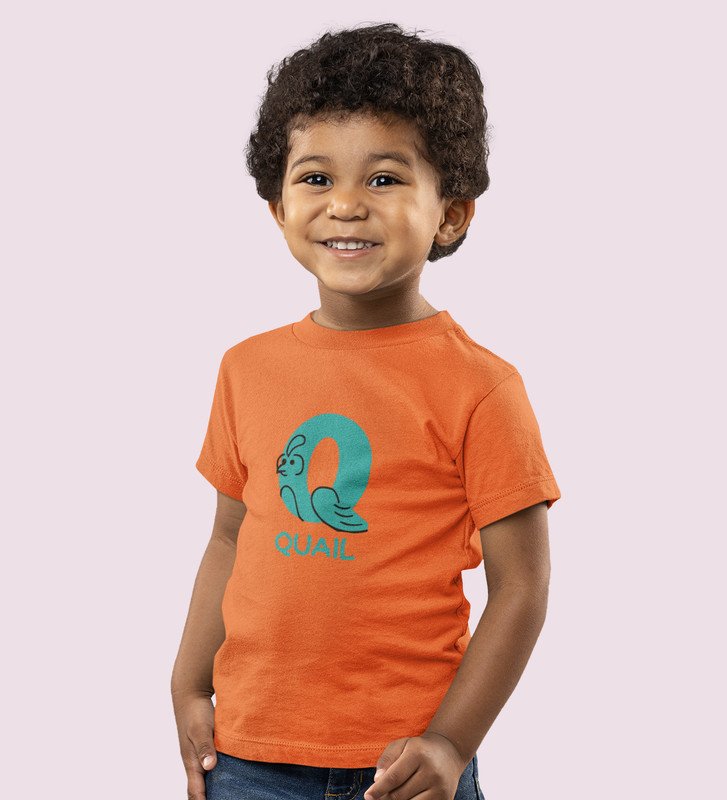 Quacky Quail, Boys Round Neck Blended Cotton Tshirt (Orange)