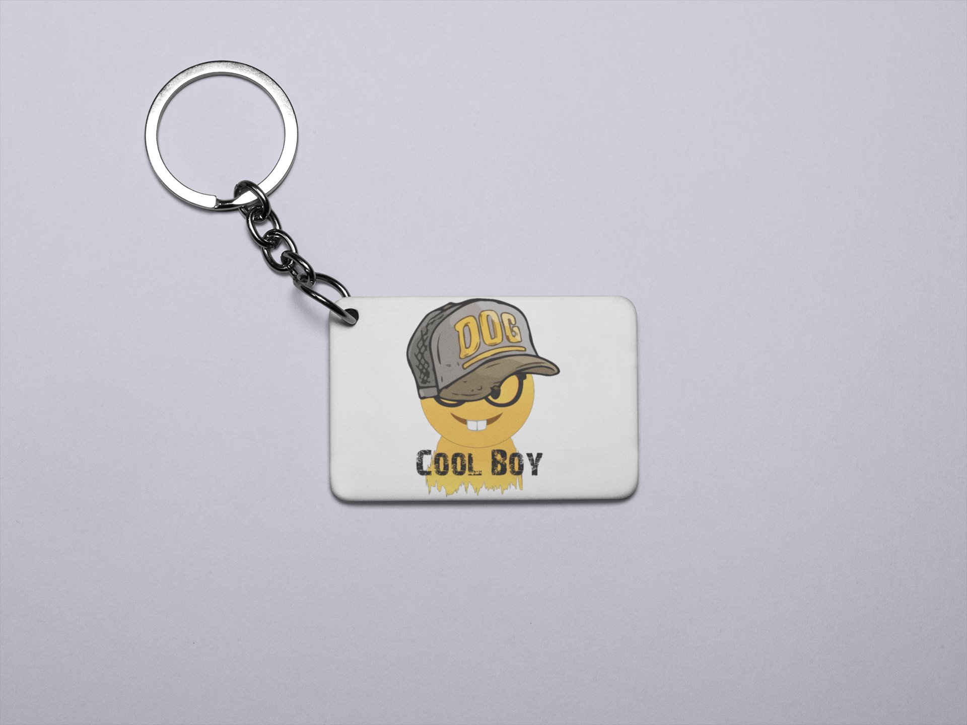 Rabbit Teeth with a Cap, Text Written Cool Boy- Emoji Printed Keychains For Emoji Lovers(Pack Of 2)