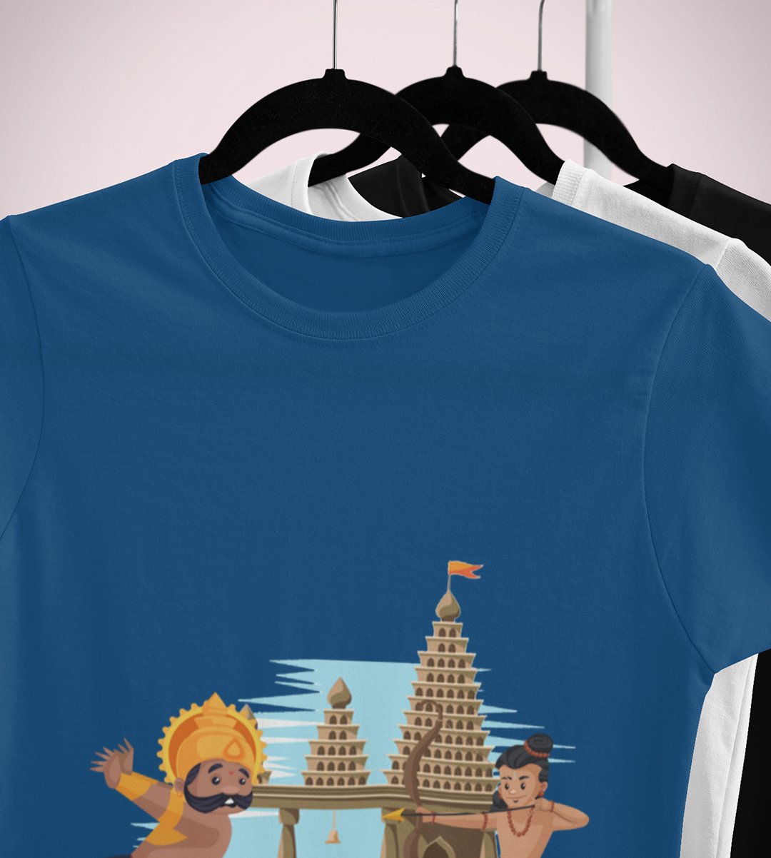 Ram and ravan animation printed unisex adults round neck cotton half-sleeve blue tshirt specially for Navratri festival/ Durga puja