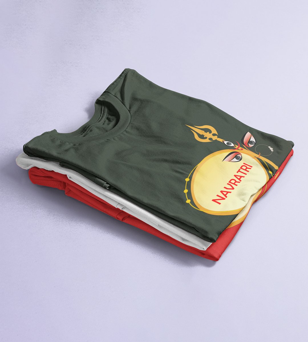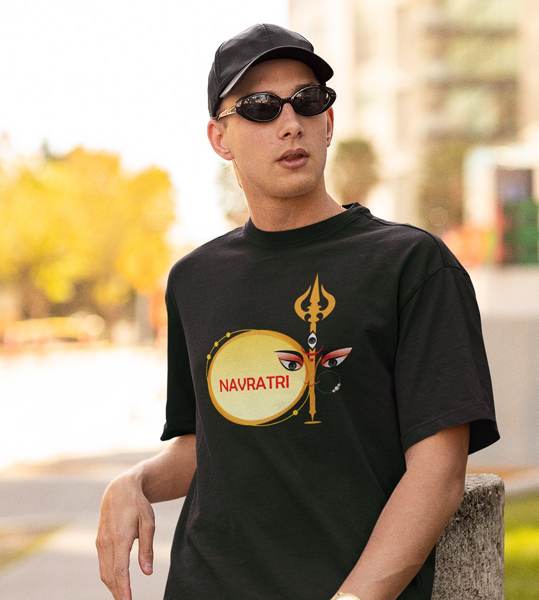 Navratri is a very auspicious festival for hindus. It takes place at the beginning of October and sometimes September. Enjoy the 9 days of festivities with full zeal and make yourself submerged in the love of Maa Durga. Navratri is also known as Durga Puja. And with this Tees, you can shine like a star during this festive season with our navratri themed cotton half sleeved Tshirts. You can pair our t-shirts with trousers and denim of your choice and make it a weekday smart casual or weekend wear. This is durable. This tshirt is smooth and soft which makes you comfortable to wear during all seasons. The printing in it is durable and odourless. It has five sizes, S,M,L,XL,XXL. The Tshirt colour is intact even after repeated washes. It can be kept in your wardrobe and hangers. Please avoid washing mashine to clean this Tee, it may affect the print. Hand wash only. We have brought you many navratri related designs printed on our different colour Tshirts to choose from. Grab it now.