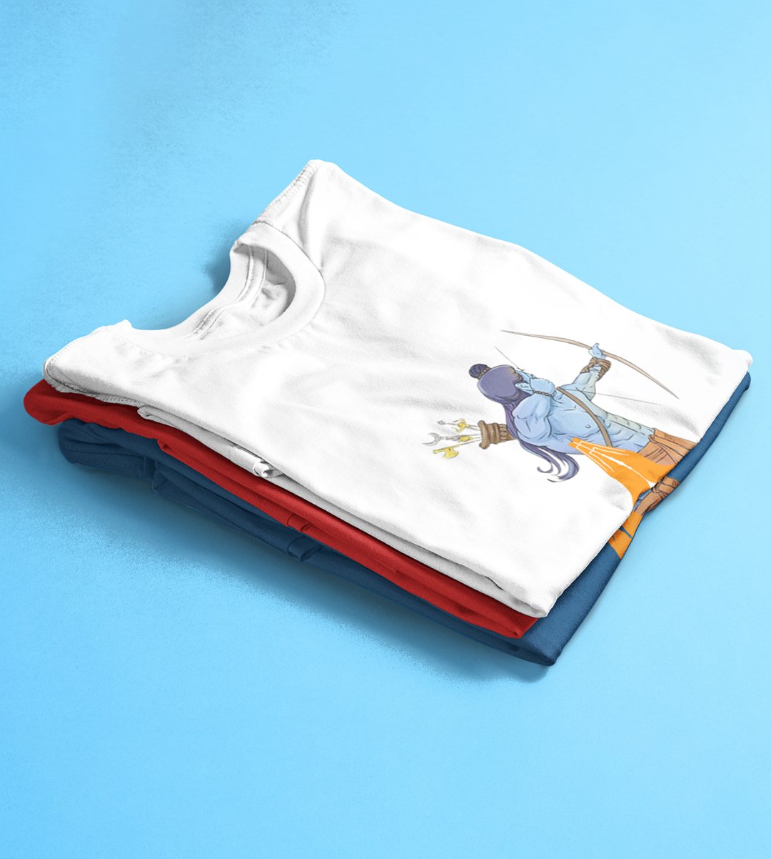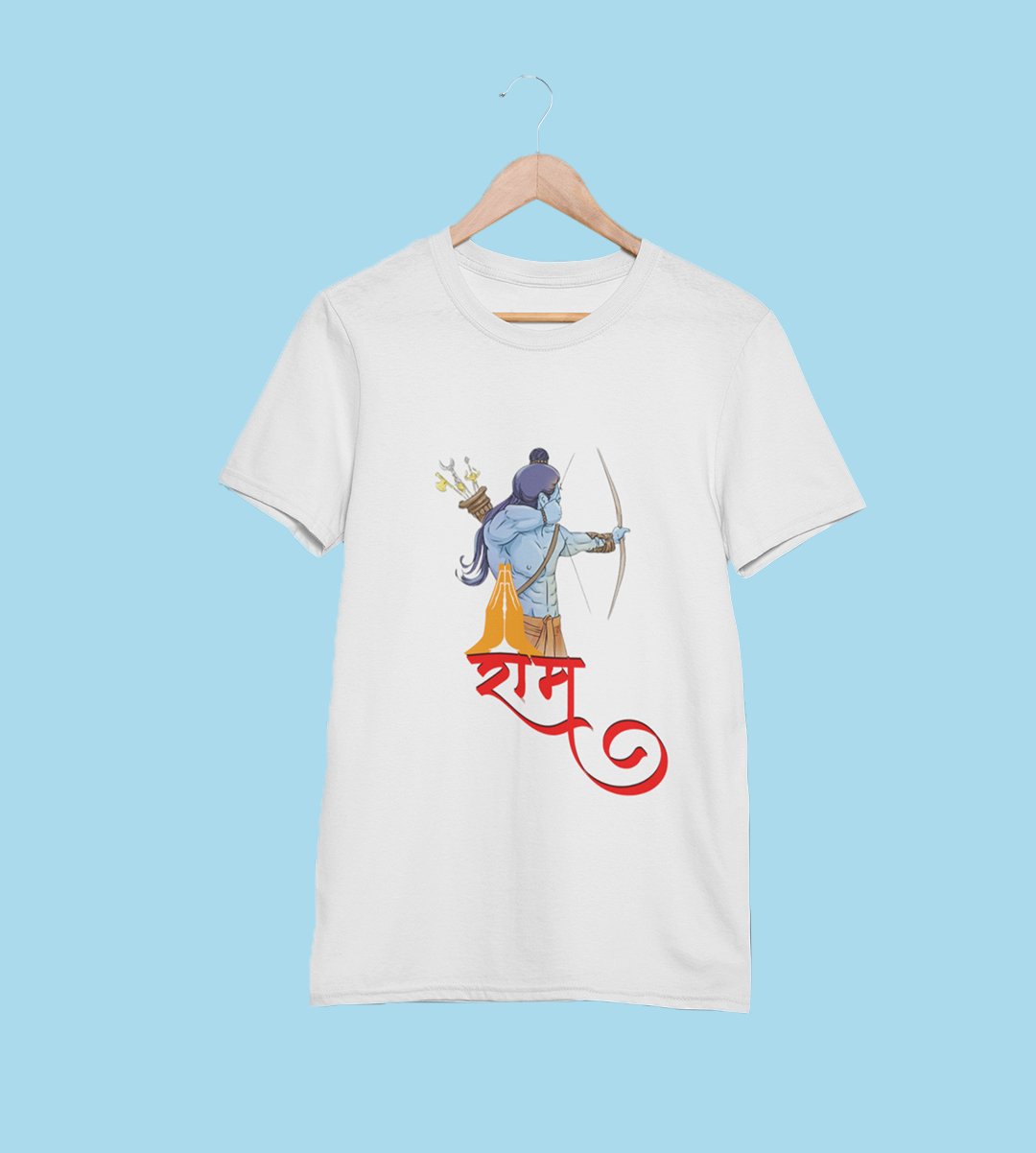 Ram animated printed unisex adults round neck cotton half-sleeve white tshirt specially for Navratri festival/ Durga puja