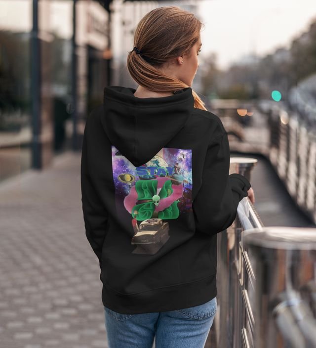 Reach for the Stars Stay High Black Cotton Printed Hoodies For Women