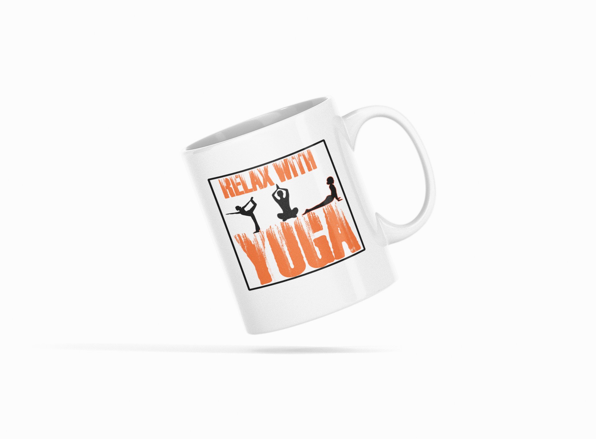 Relax With Yoga Text - Printed Coffee Mugs For Yoga Lovers
