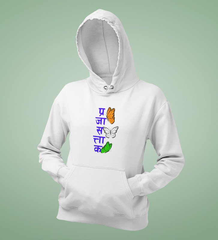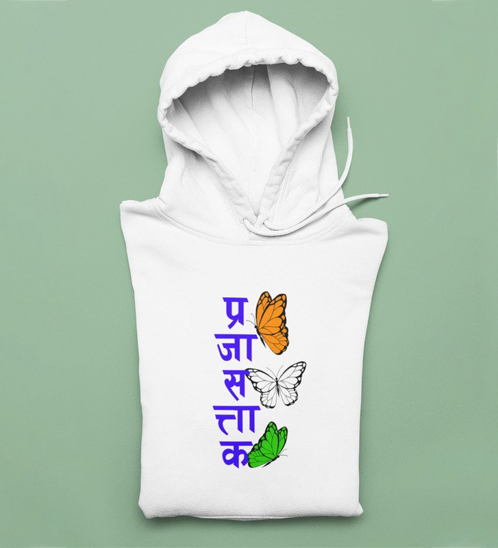 Republic Day, White Men Printed Hoodies For Mens & Boys