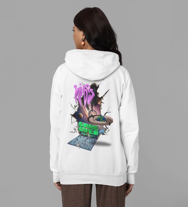 Restart Your Vibe Game Over White Cotton Printed Hoodies For Women