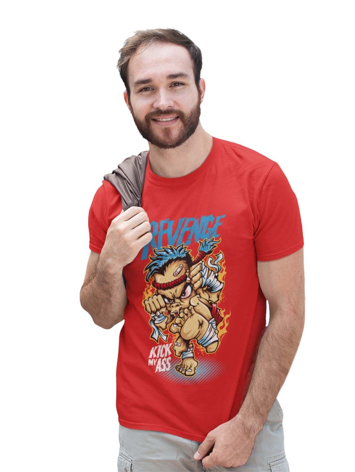 Revenge Red Round Neck Cotton Half Sleeved T-Shirt with Printed Graphics