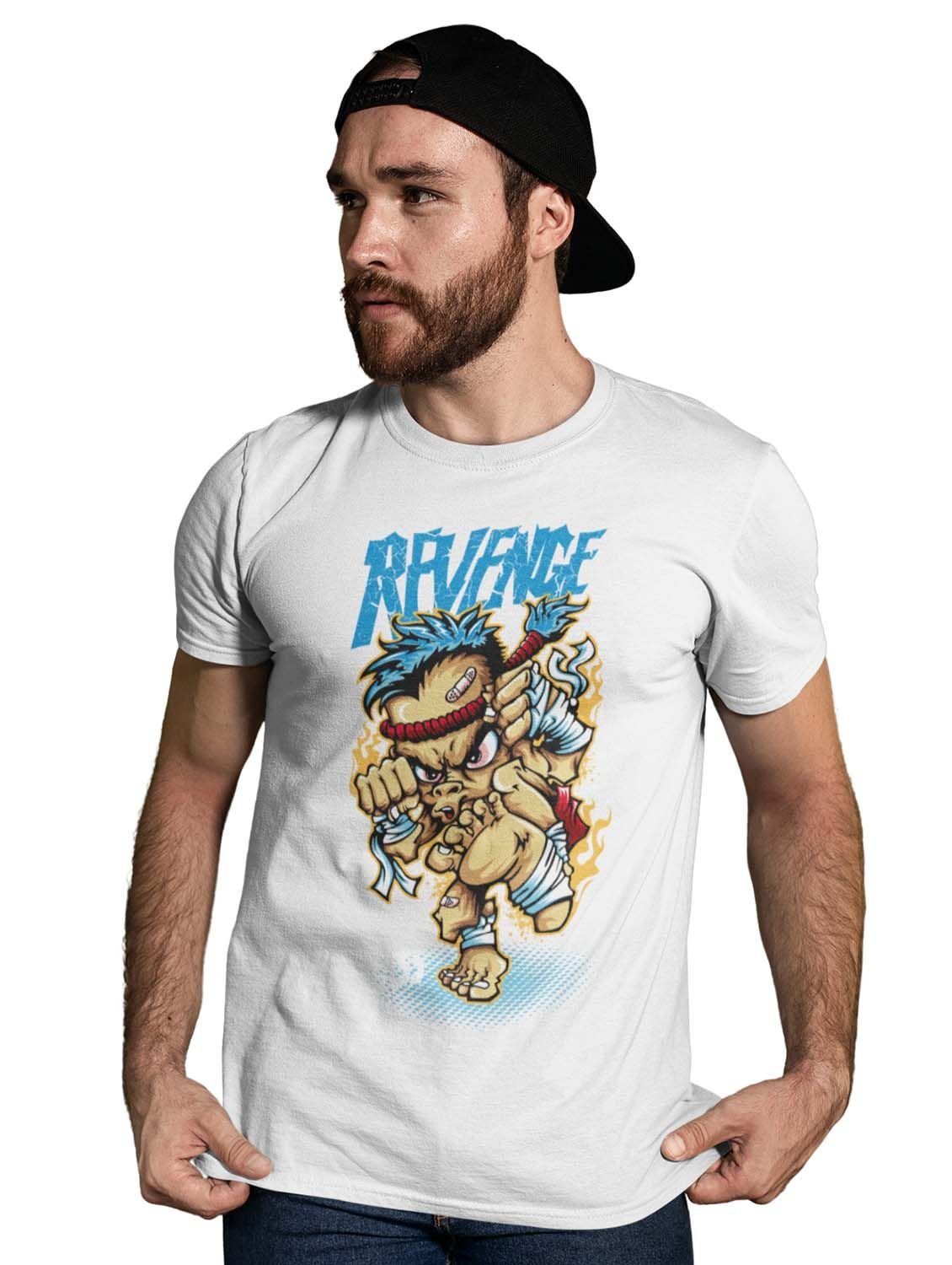 Revenge White Round Neck Cotton Half Sleeved T-Shirt with Printed Graphics