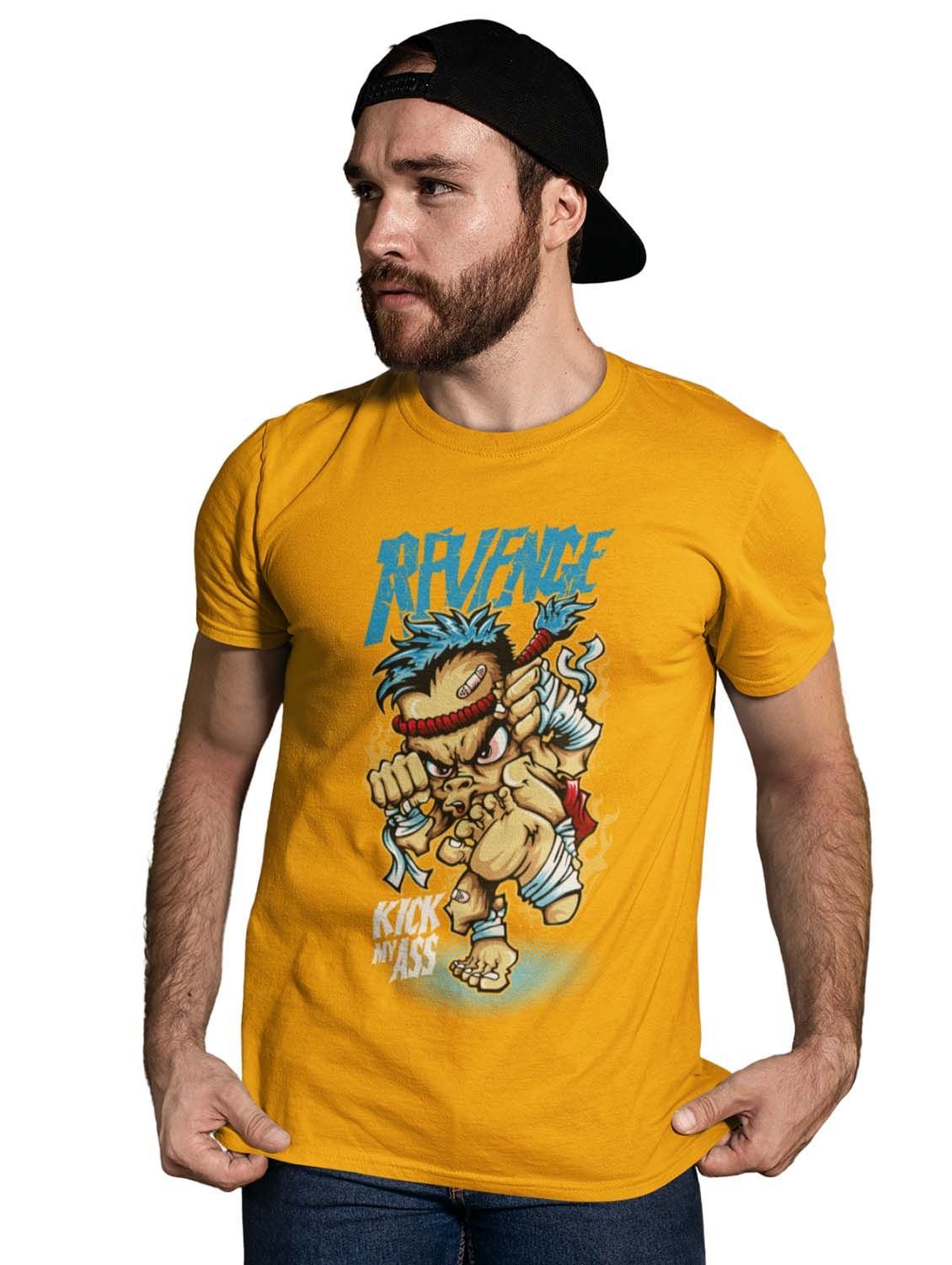 Revenge Yellow Round Neck Cotton Half Sleeved T-Shirt with Printed Graphics