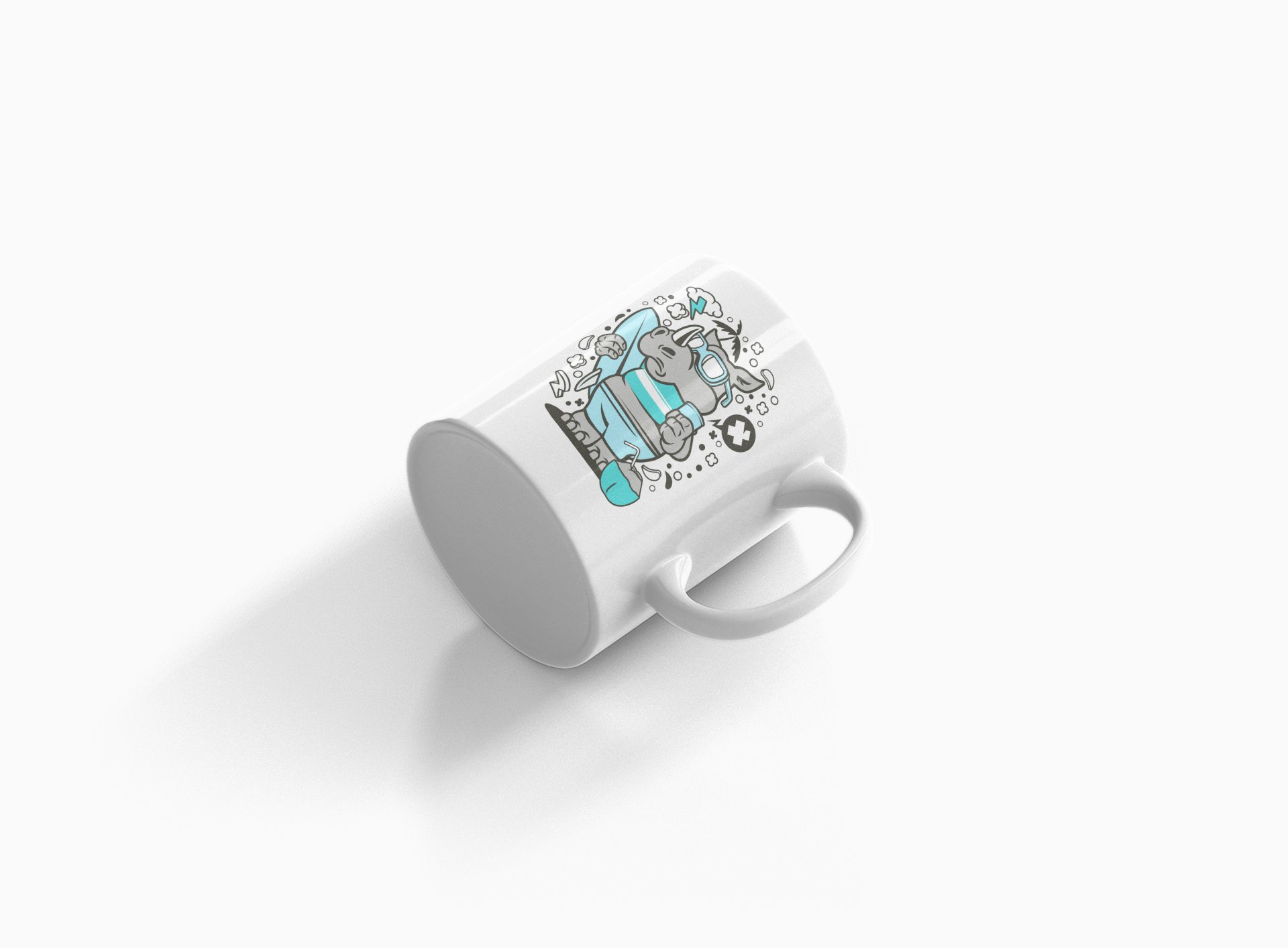 Rhino standing - animation themed printed ceramic white coffee and tea mugs/ cups for animation lovers