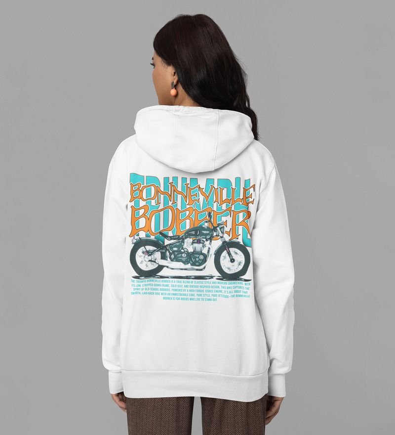 Ride in Style Classic Cruiser Printed White Hoodie for Women