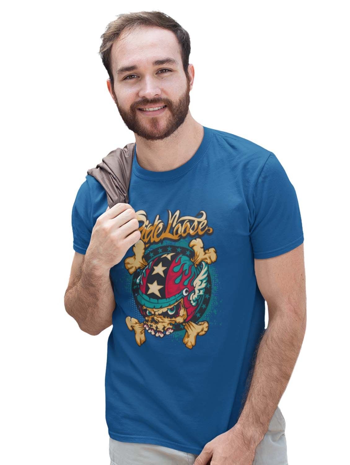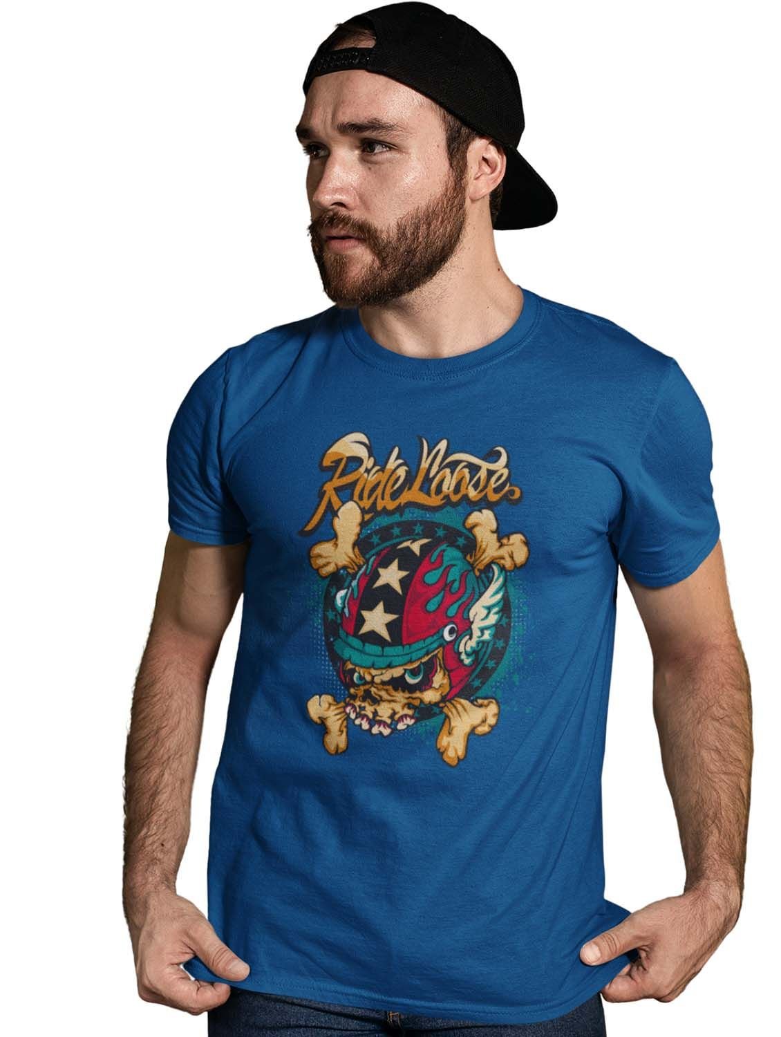 Riotous Cranium Blue Round Neck Cotton Half Sleeved T-Shirt with Printed Graphics