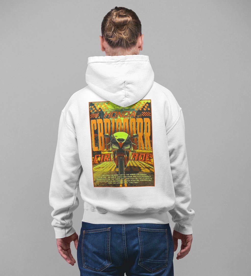 Ride with the Best Performance Sports Bike Printed White Hoodie for Men